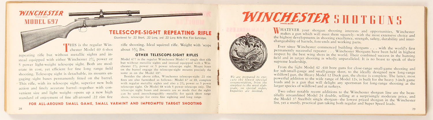 1939 Winchester pocket catalog, pictures full line of guns & ammo boxes, 56 pages. Grade: Excellent - Value: 10 to 60