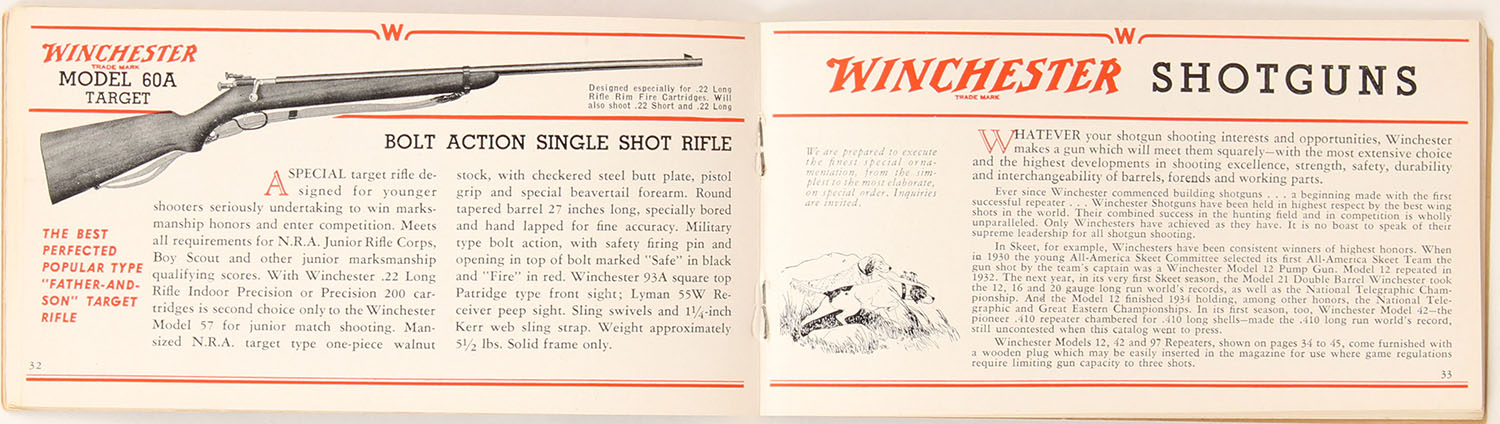 1934 Winchester pocket catalog, pictures full line of guns & ammo boxes, 64 pages. Grade: Excellent - Value: 10 to 60