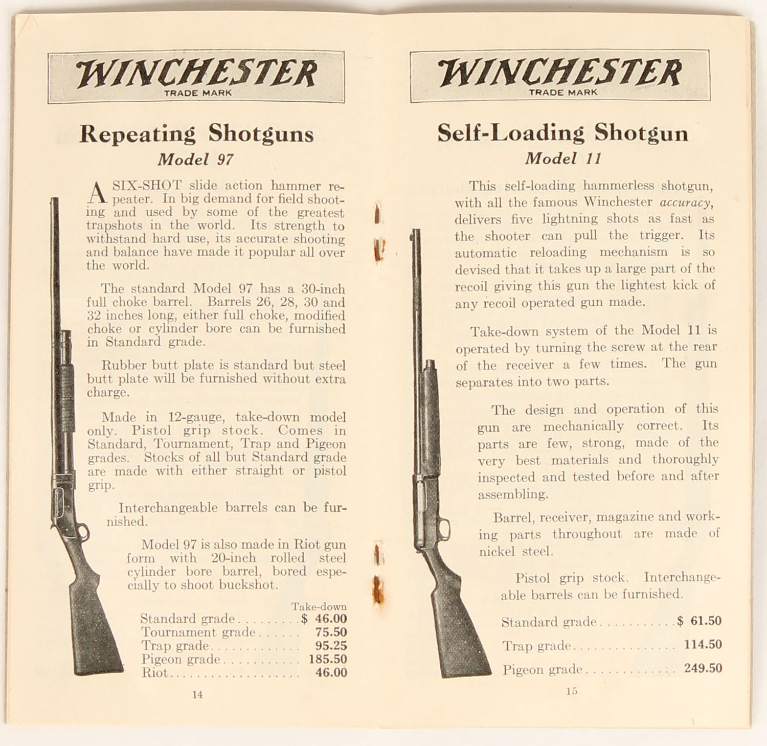 The Winchester Store pocket catalog, pictures full line of guns & ammo, 30 pages. Grade: Excellent - Value: 10 to 60