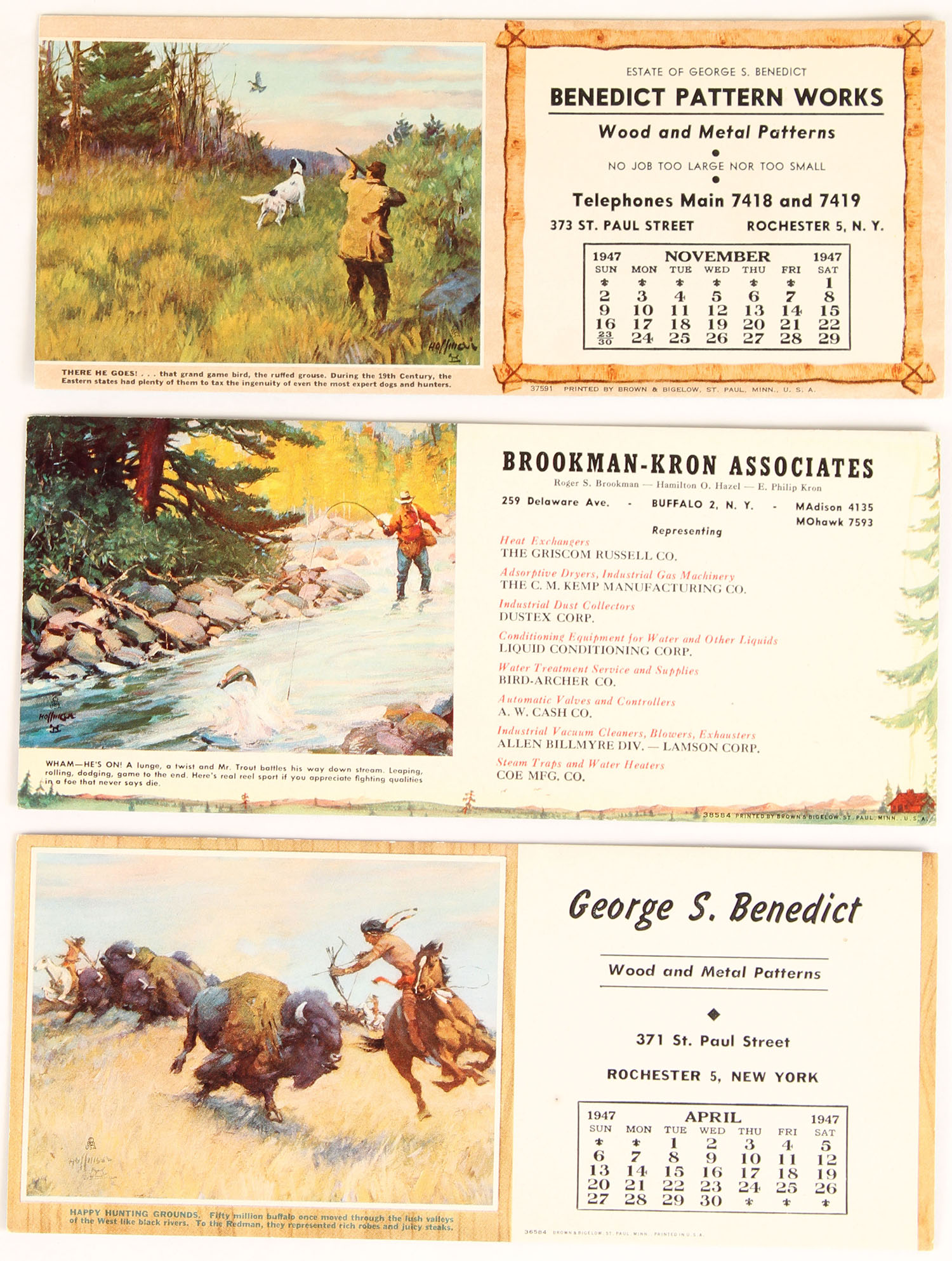 Lot of 3 Ink Blotters, pictures hunting & fishing scenes, two are dated 1947, 4'' x 9'', unused. Grade: Excellent - Value: 10 to 50