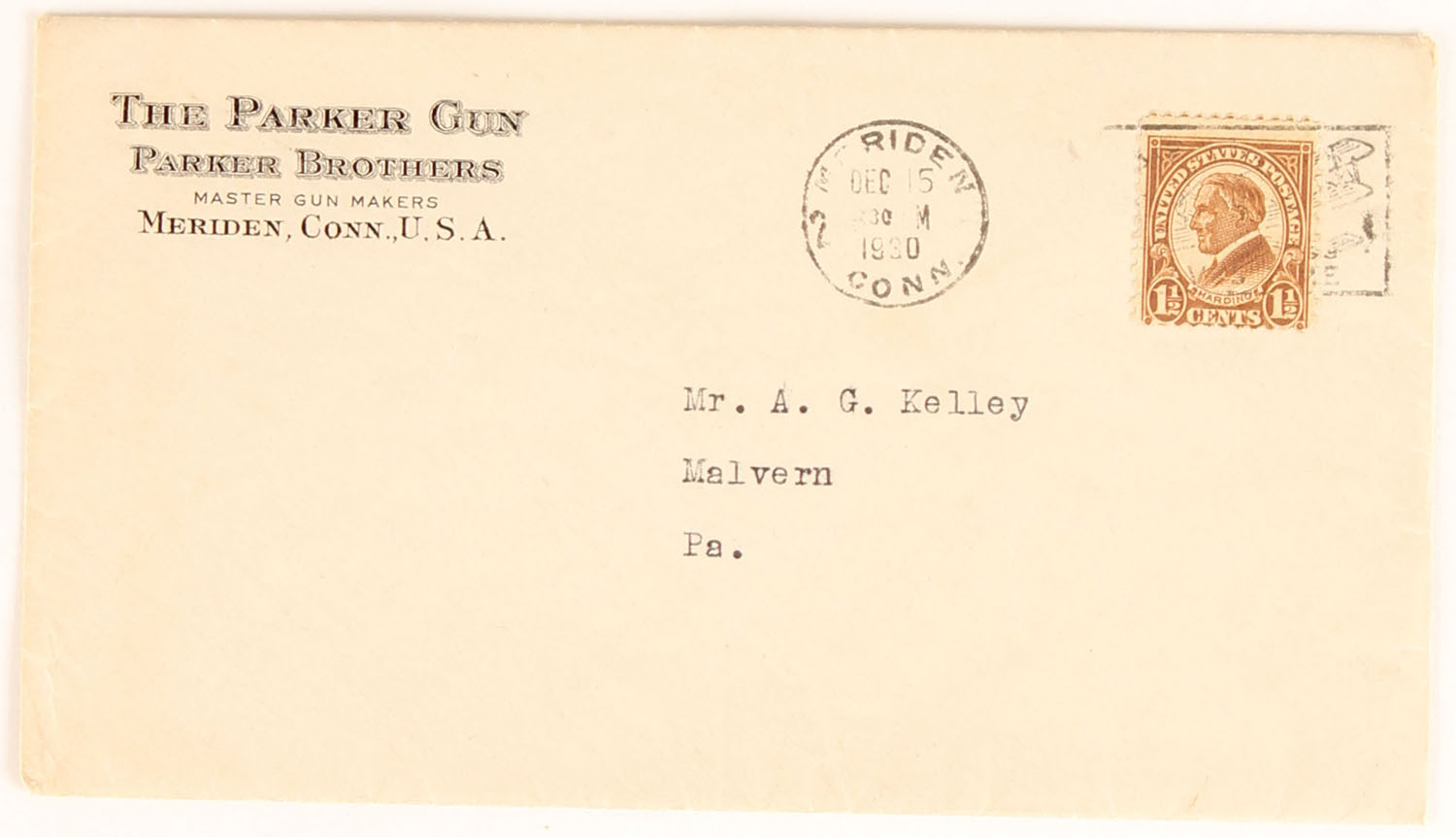 The Parker Gun, Parker Brothers Envelope, dated 1930. Grade: Excellent - Value: 10 to 100