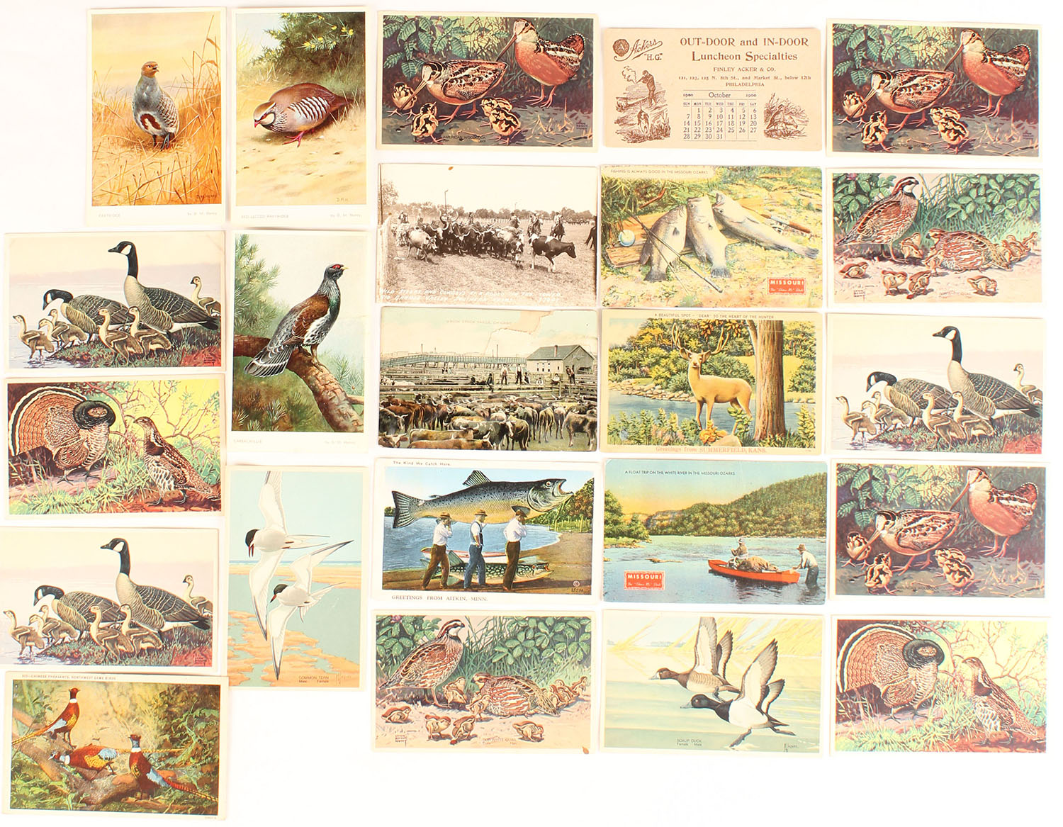 Large lot of game birds & animal post cards, 10 are by Lynn Bogue Hunt. Grade: Excellent - Value: 20 to 200
