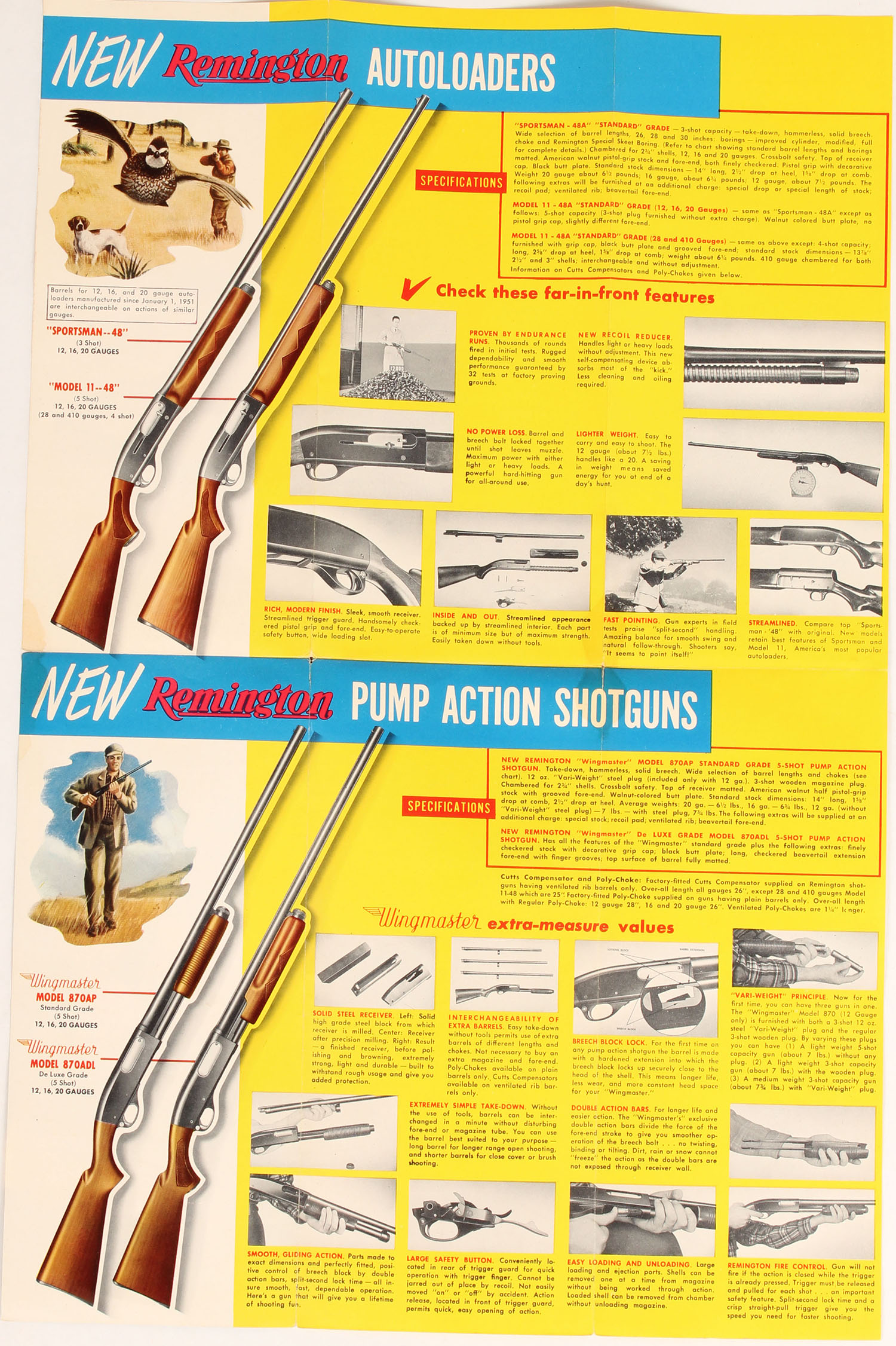 Remington Shotguns brochure, pictures many full color guns & ammo boxes. Grade: Excellent ++ - Value: 10 to 50