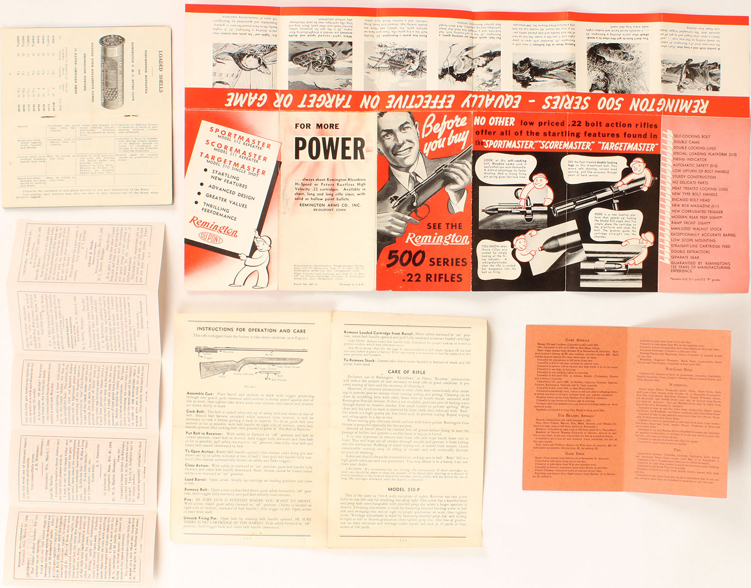 Remington 500 Series .22 Rifles brochure & other paper items, has three full color rifles on the inside. Grade: Excellent - Value: 10 to 50