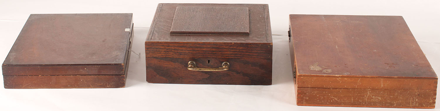 Lot of 3 wood cases, all show some use. Grade: Very Good + - Value: 20 to 250