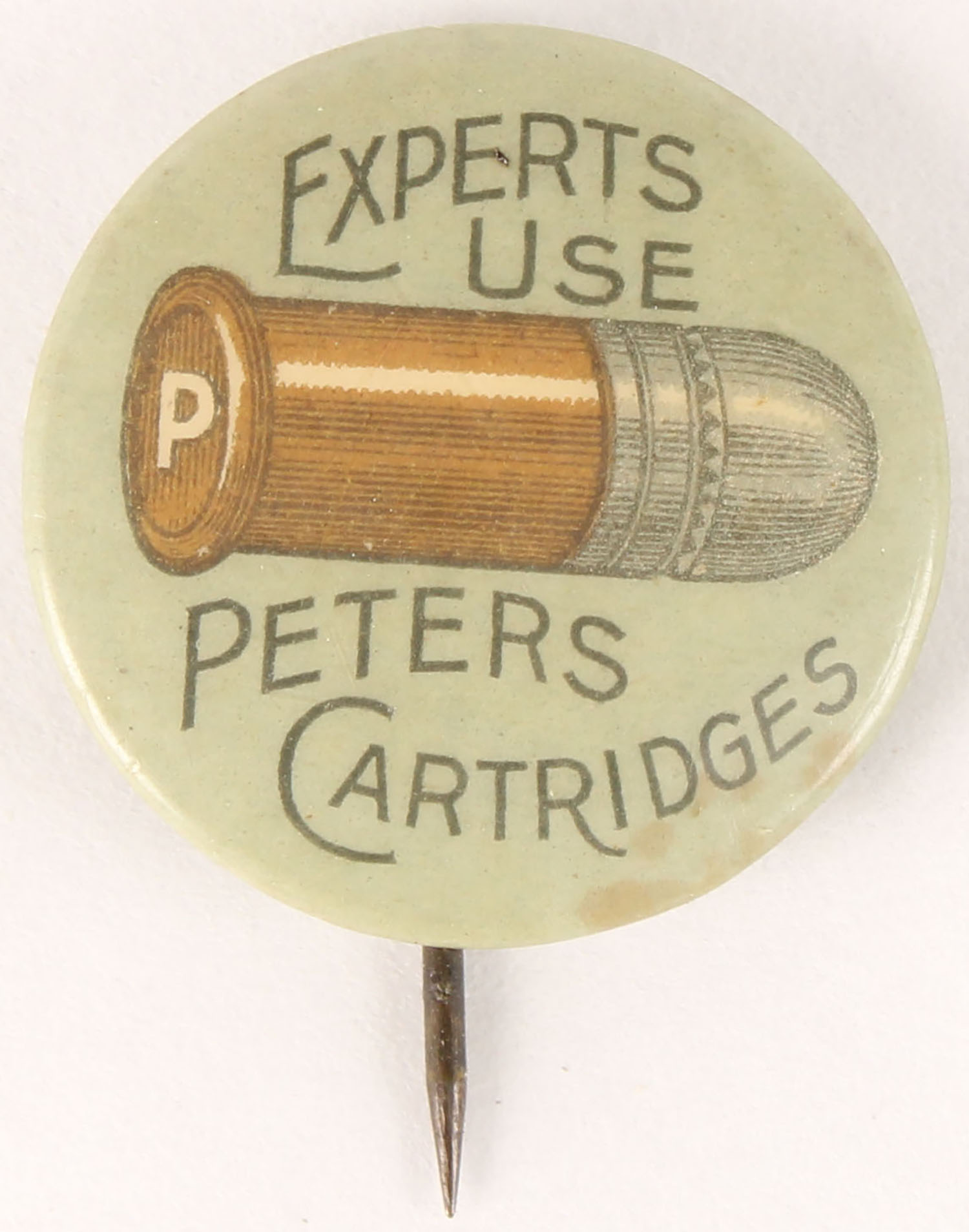 Peters Pinback, pictures a 22 cart., ''Experts Use Peters Cartridges'' 7/8'', Whitehead & Hoag Co. paperback, pin is clean & paperback shows minor wear. Grade: Excellent - Value: 16 to 60