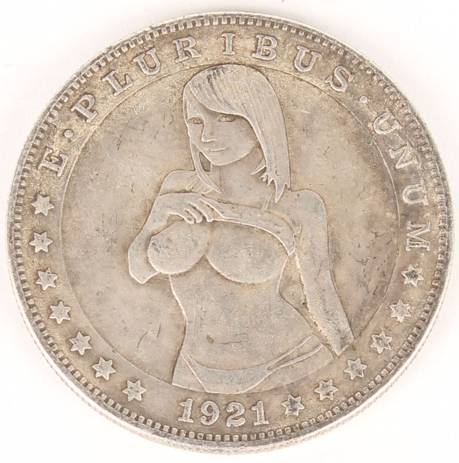 RARE! Nude 1921 Silver Dollar brothel Token, made of silver. Grade: Very Good ++ - Value: 50 to 300