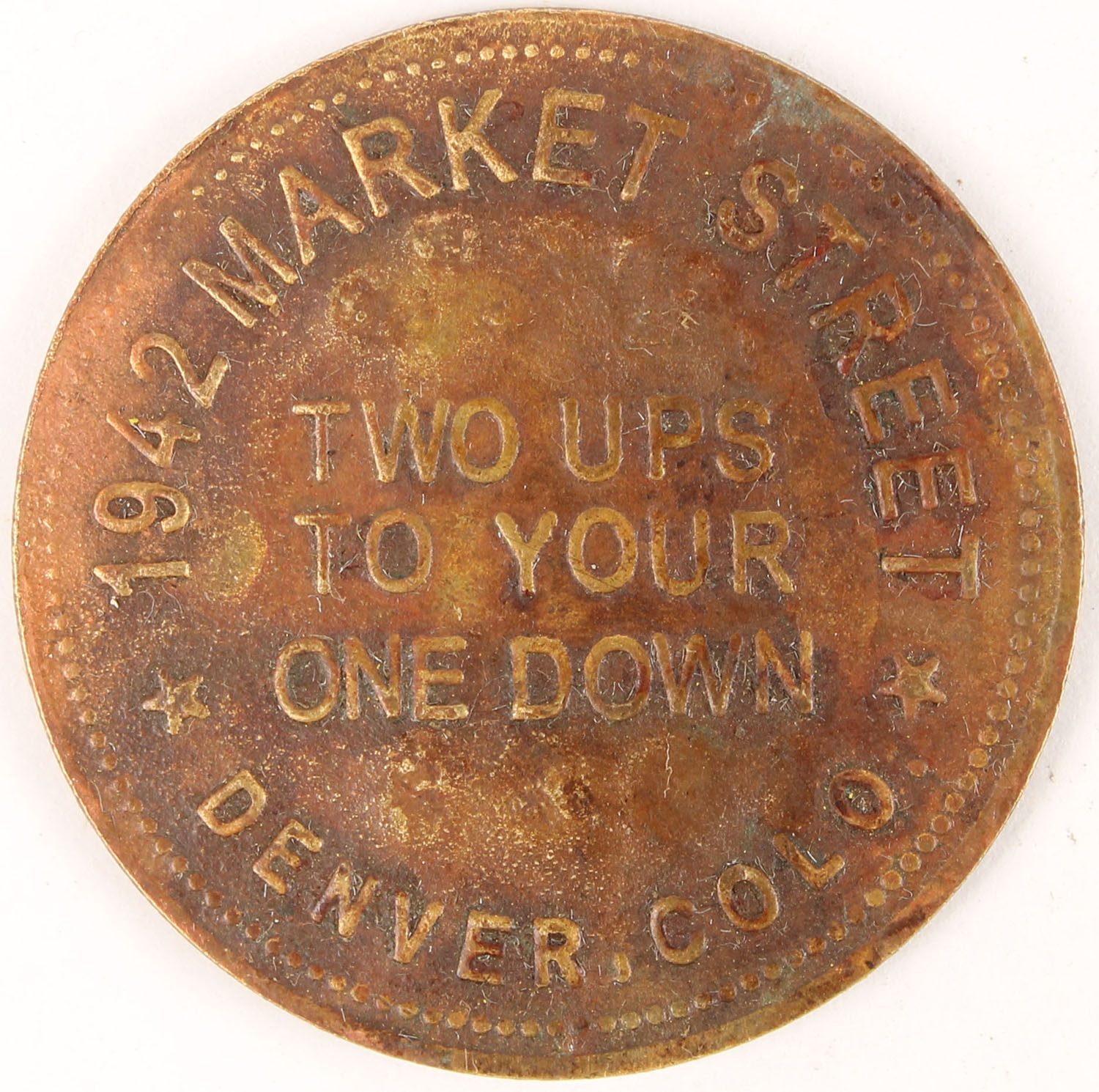 Double sided Brothel Token dated 1881 ''1942 Market Street Denver, COLO''. Grade: Excellent - Value: 6 to 40