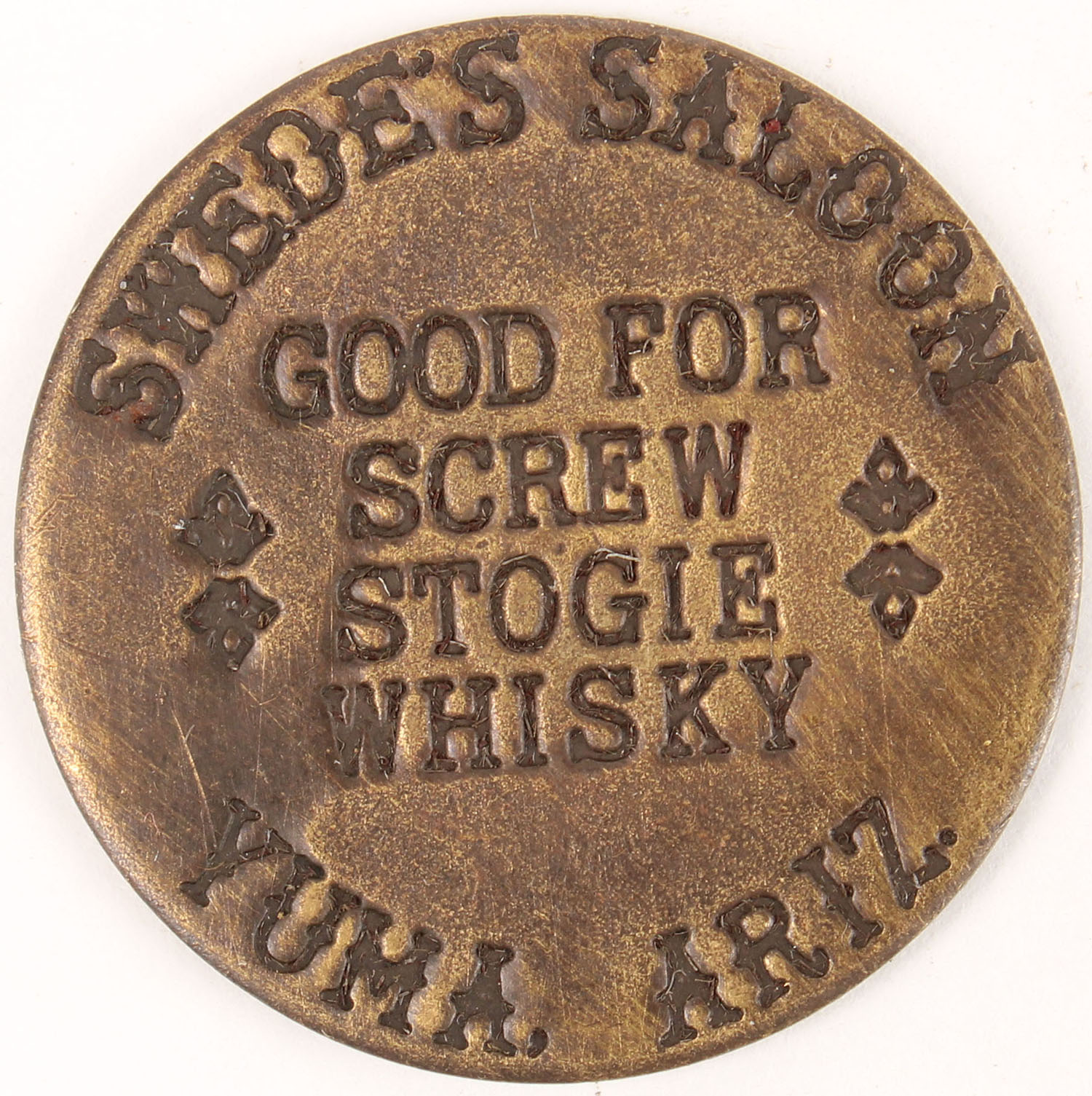 Double sided Brothel Token. ''Swedes Saloon Yuma, Ariz.''. Grade: Excellent - Value: 6 to 40