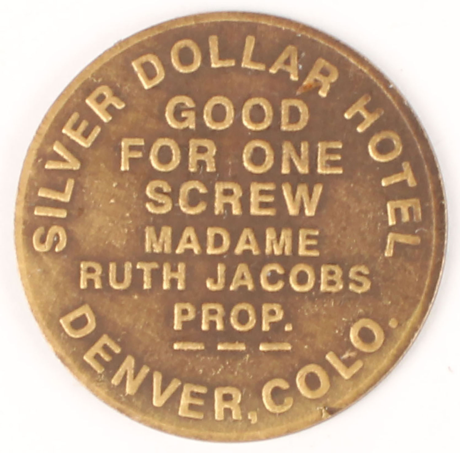 Double sided Brothel Token. ''Silver Dollar Hotel Denver, Colo.''. Grade: Excellent - Value: 6 to 40