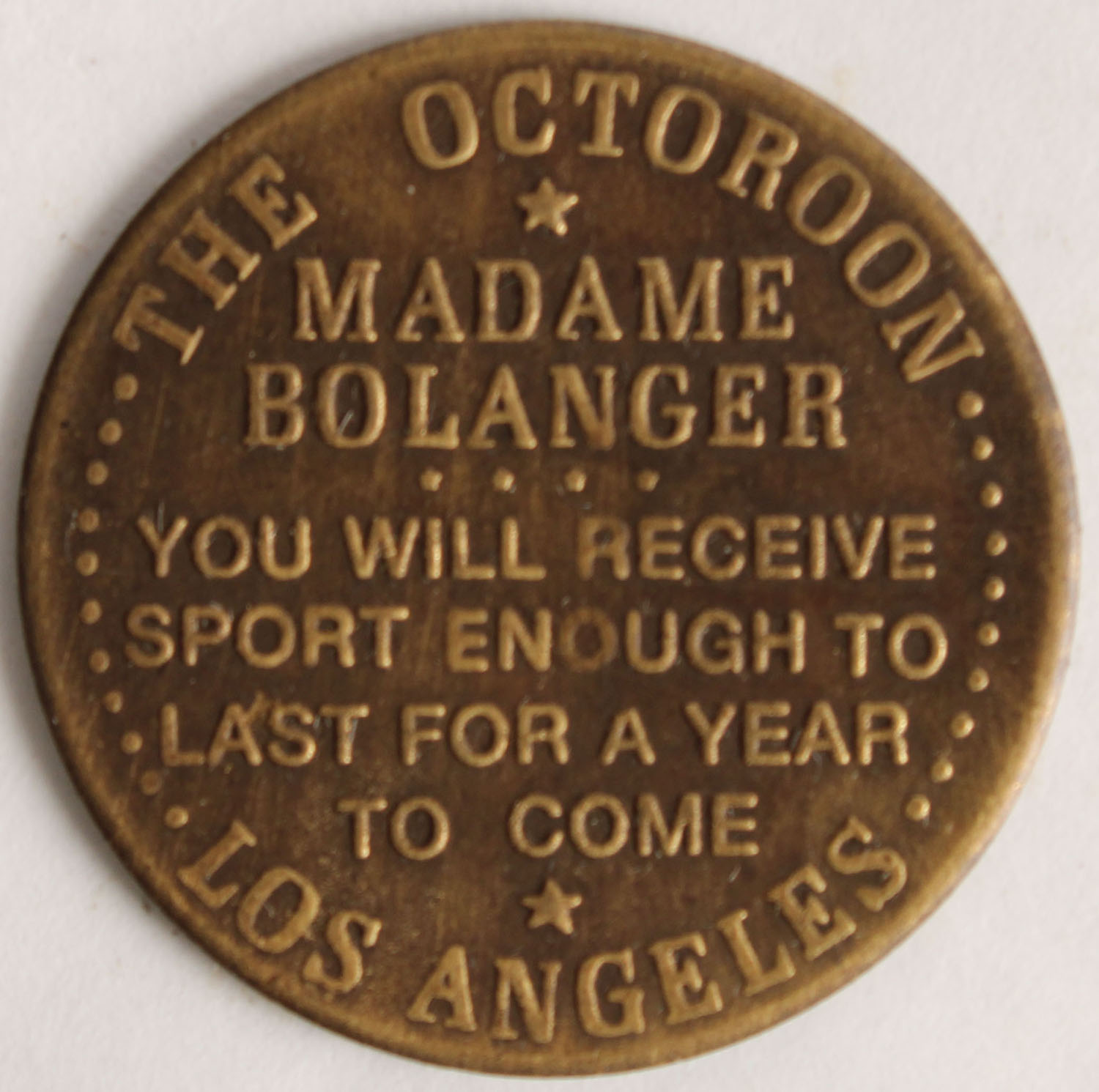 Double sided Brothel Token. ''The octoroom Los Angeles''. Grade: Excellent - Value: 6 to 40