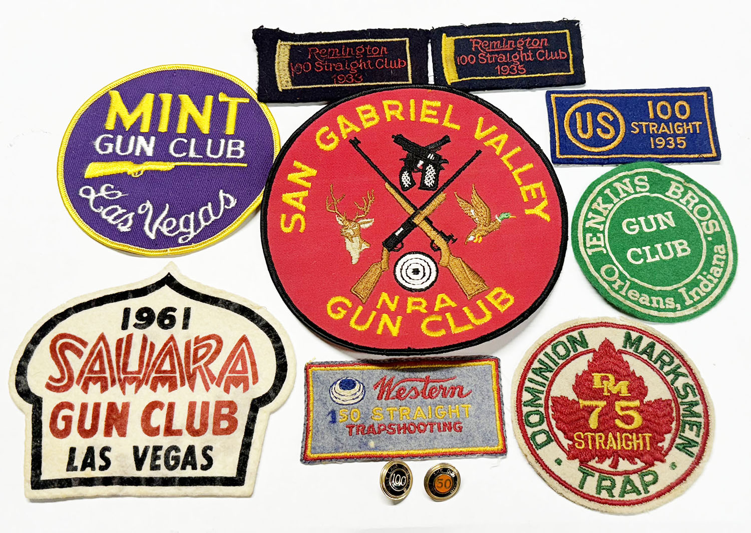 Large lot of patches & 2 Salt Lake Gun Club (50 & 100) pinbacks. Grade: Excellent ++ - Value: 6 to 100