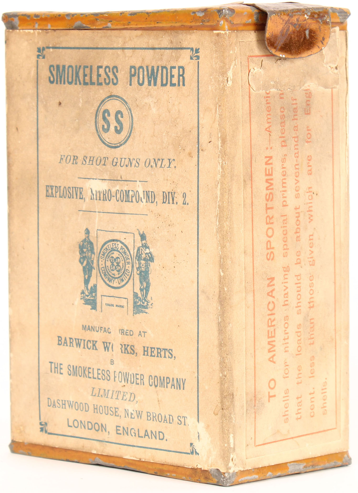 Vintage Barwick Works London England powder tin, Empty, has age soiling but label is still solid. Grade: Very Good - Value: 20 to 80