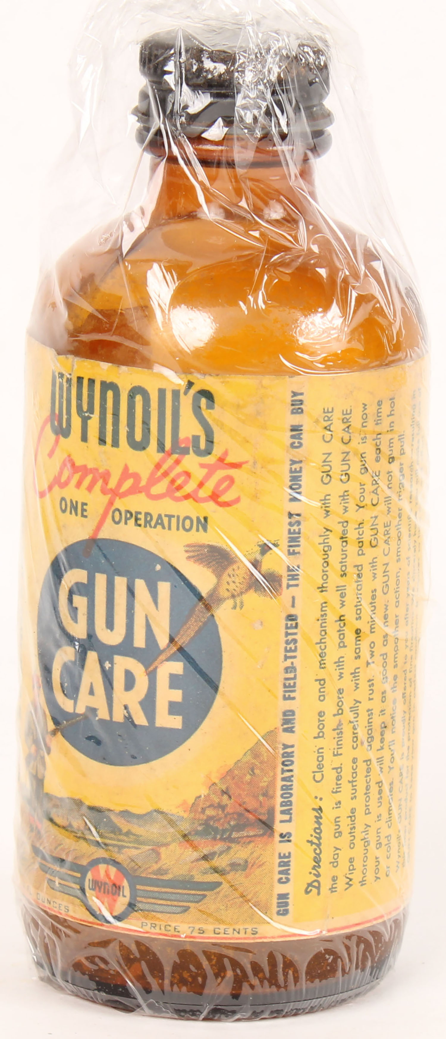 Wynoils Gun Oil, Empty glass jar, has age soiling. Grade: Excellent - Value: 20 to 100