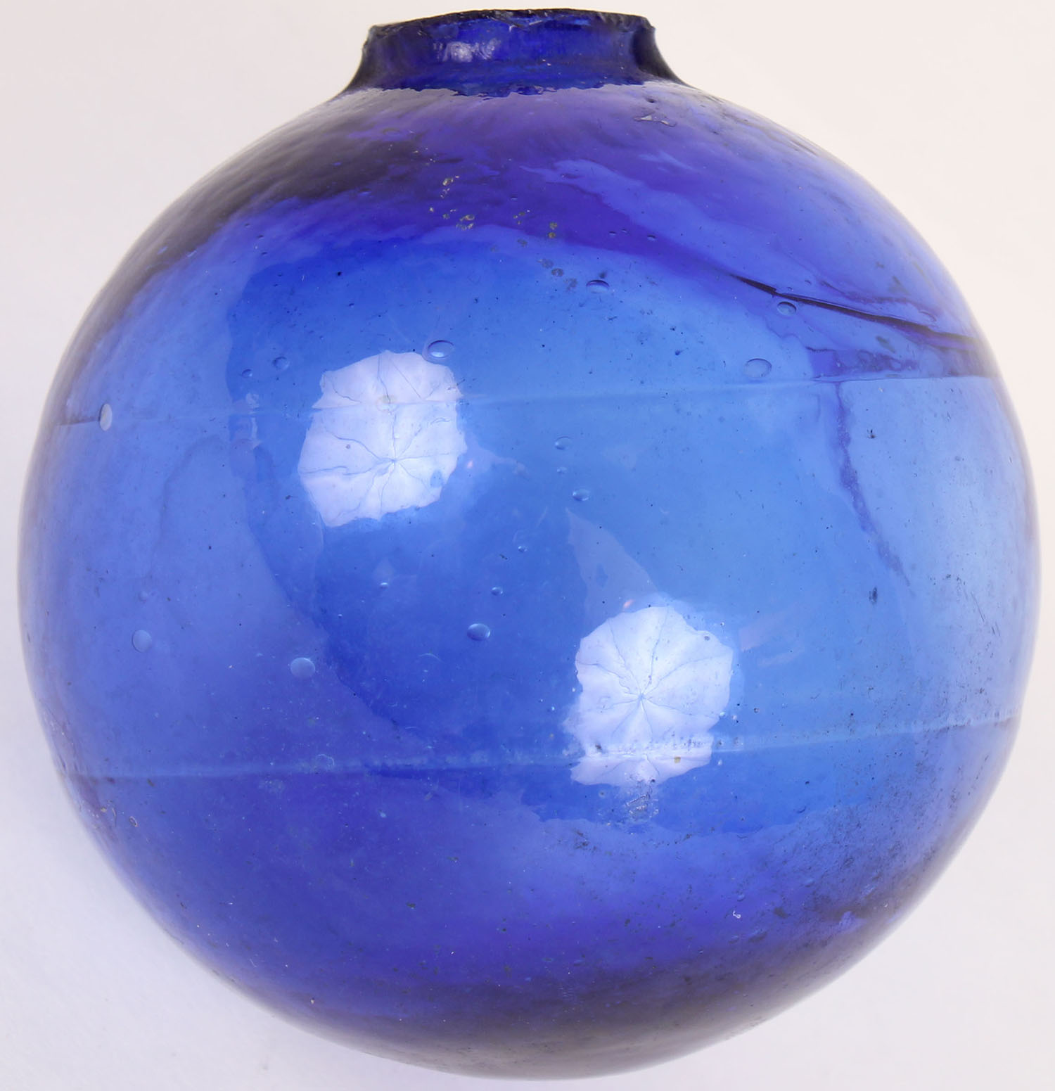 RARE! Light blue Glass Target Ball, 3 piece mold, 2 5/8'' dia., low neck, circa 1880-1900. Grade: Excellent ++ - Value: 200 to 600