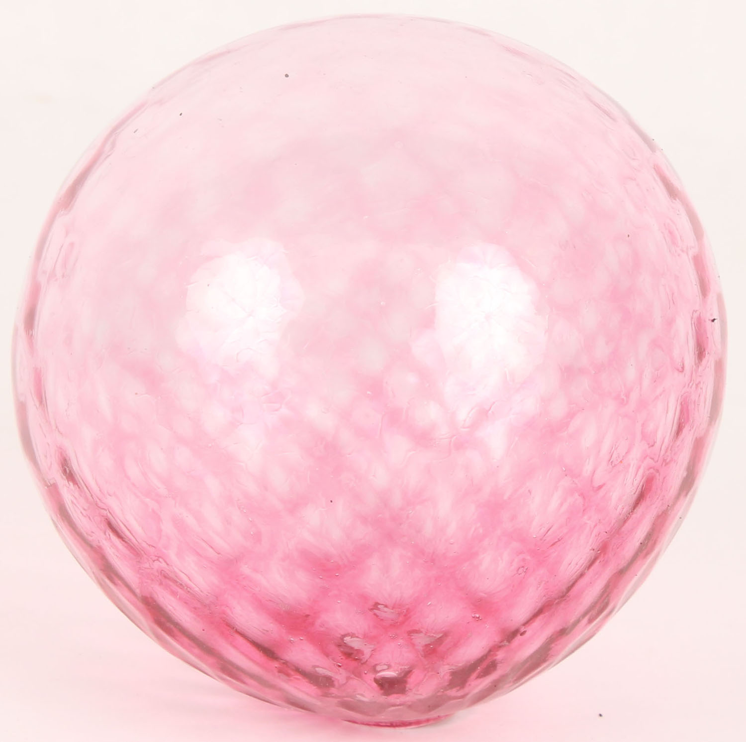 RARE! Pink Amethyst Glass Target Ball, fishnet design faded to smooth on bottom, 1 piece ball, 3'' dia., low neck, circa 1880-1900. Grade: Excellent ++ - Value: 500 to 1000