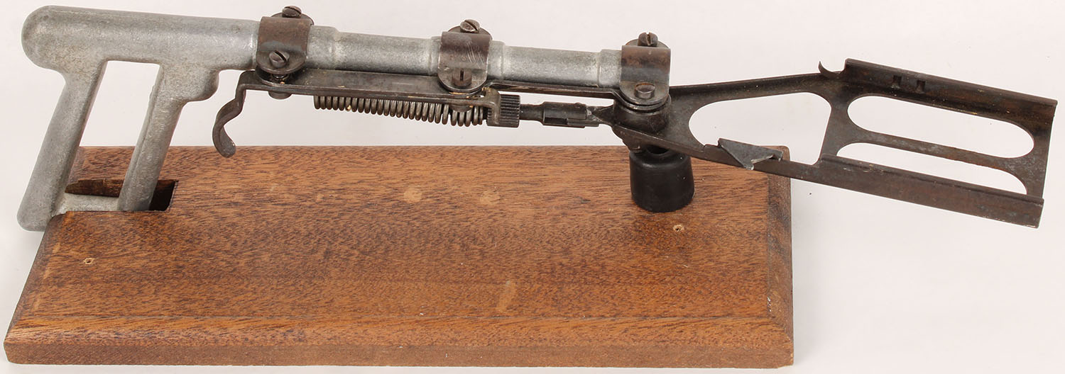 Mossberg TARGO trap unit on hand trap frame, with a copy of the orginal advertising, use for throwing mini clays. Grade: Excellent - Value: 100 to 600