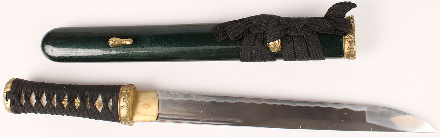 Samurai Musashi Tanto, in wood box with liner, all very bright and clean, 10'' blade. Grade: Excellent ++ - Value: 30 to 90