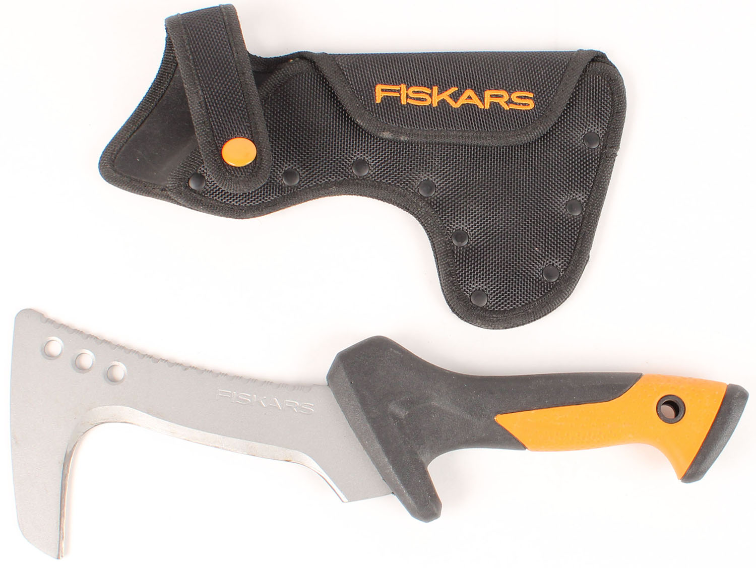 Fiskars hatchet, with sheath, 8'' blade, has been used but still solid. Grade: Excellent - Value: 10 to 50