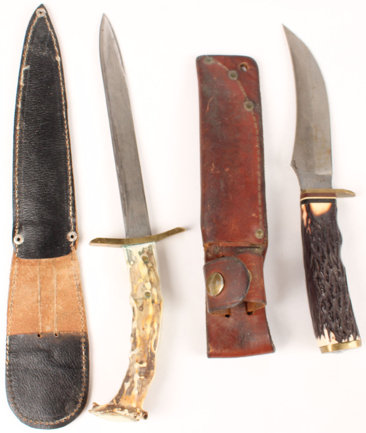 Lot of 2 fixed bladed knife with leather sheath. Grade: Very Good ++ - Value: 10 to 50
