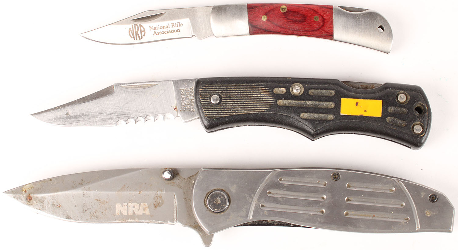 Lot of 3 folding knives, has age soiling. Grade: Very Good ++ - Value: 10 to 50