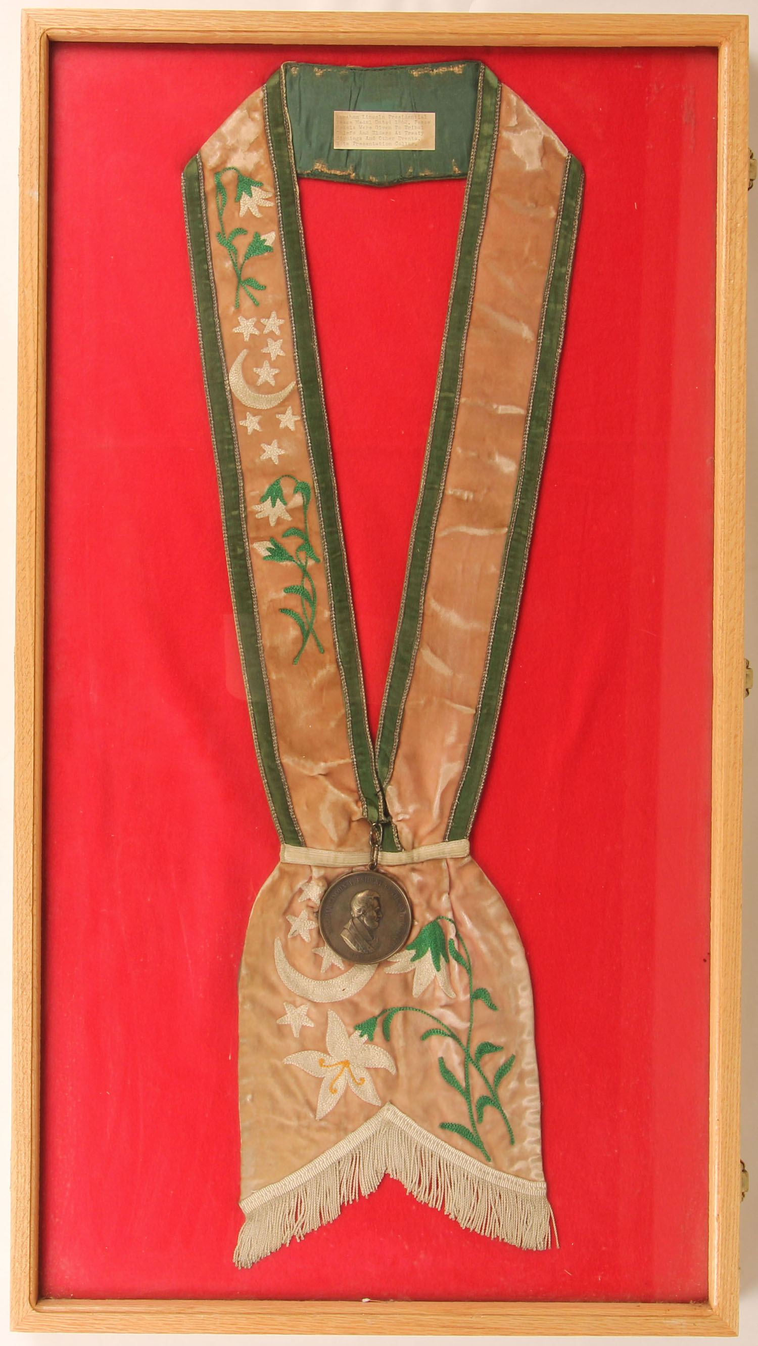 RARE Abraham Lincoln Presidential Peace medal on beautiful handmade collar, medal dated 1862, Peace medal were given to Chiefs and other important tribesman at treaty signings and visits to Washington D.C., collar is 36'' x 12'', displayed in glass case(40''x22''). Grade: Excellent - Value: 500 to 1000