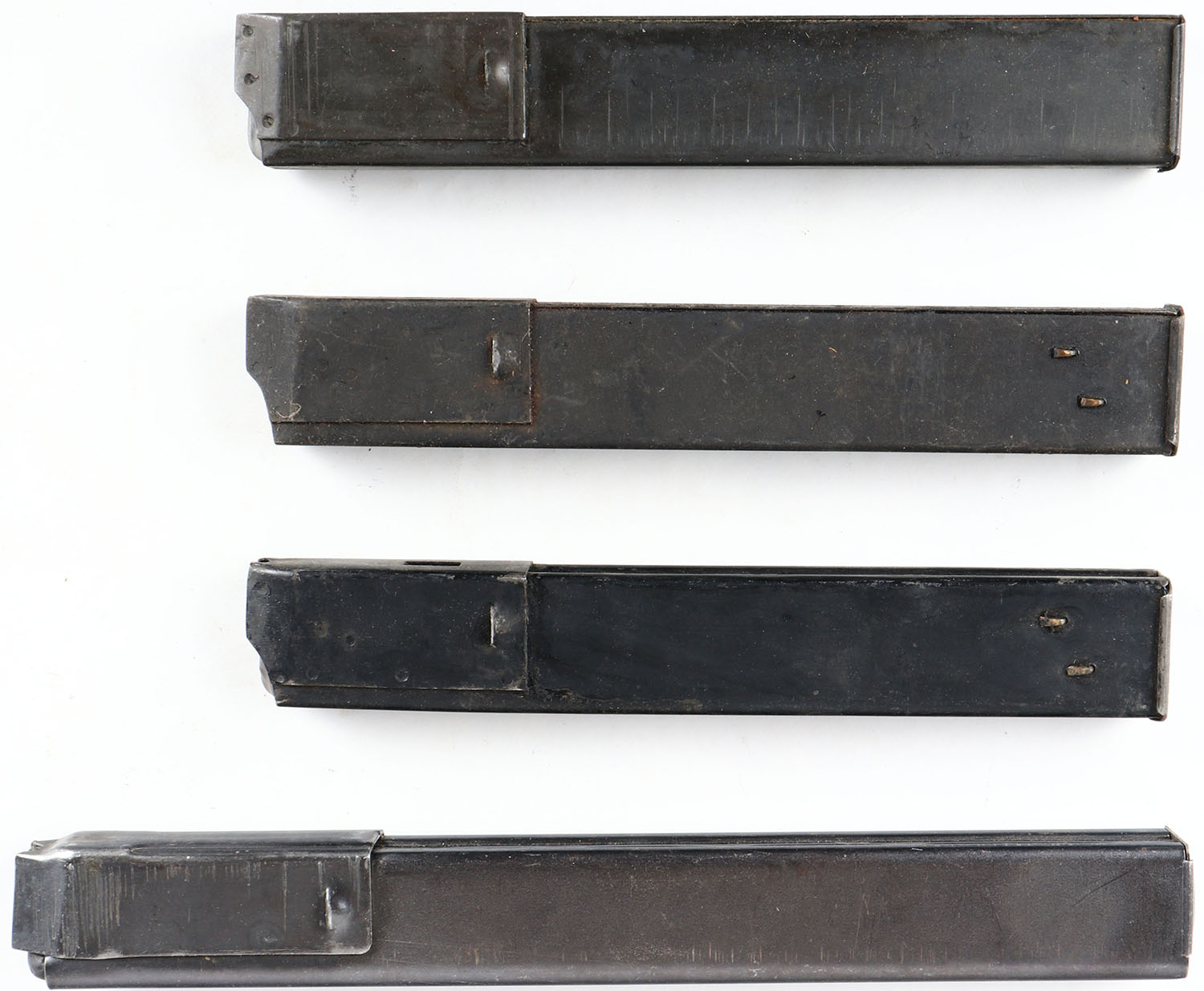 Lot of 4 unmarked mags, maybe for UZI. Grade: Excellent - Value: 30 to 100
