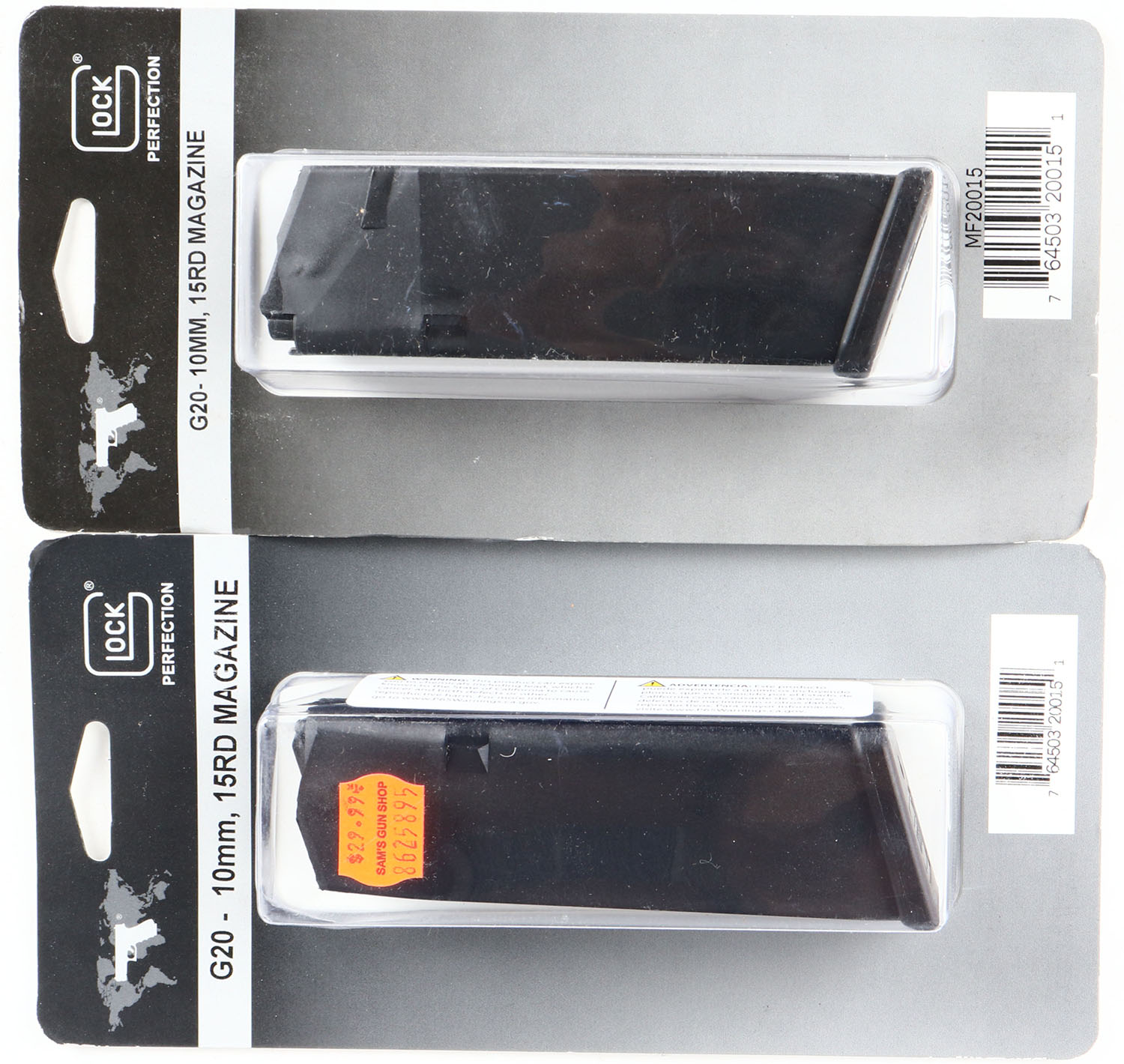 Lot of 2 Glock 10mm 15 rd mags., in orginal packaging. Grade: Excellent - Value: 16 to 60