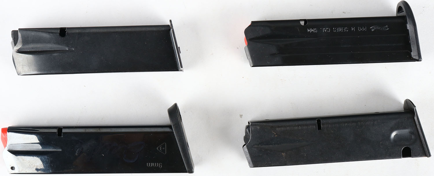 Lot of 4 pistol mags., 9mm. Grade: Excellent - Value: 10 to 50