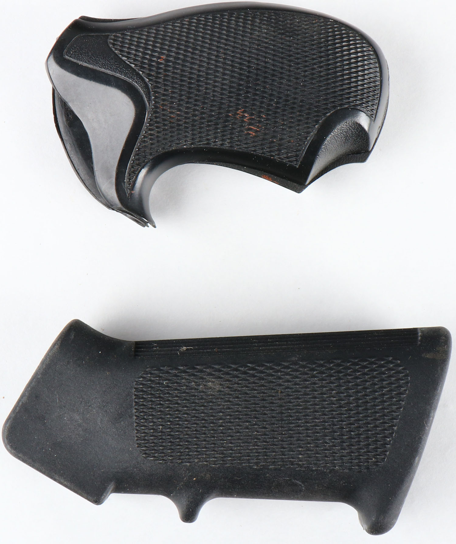 Lot of 2, 1 unmarked grip and 1 Pachmayr rubber pistol grip. Grade: Excellent - Value: 6 to 50