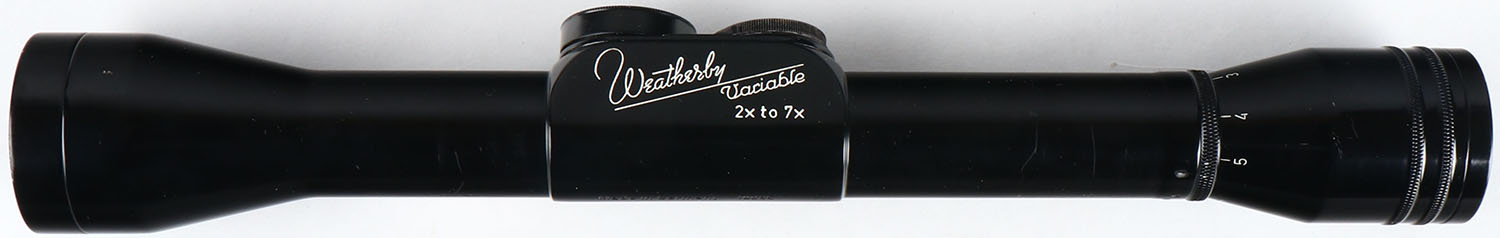 Weatherby 2x-7x Variable Magnification Rifle Scope, fine crosshair reticle, glass is clear and crisp. Grade: Excellent ++ - Value: 50 to 150