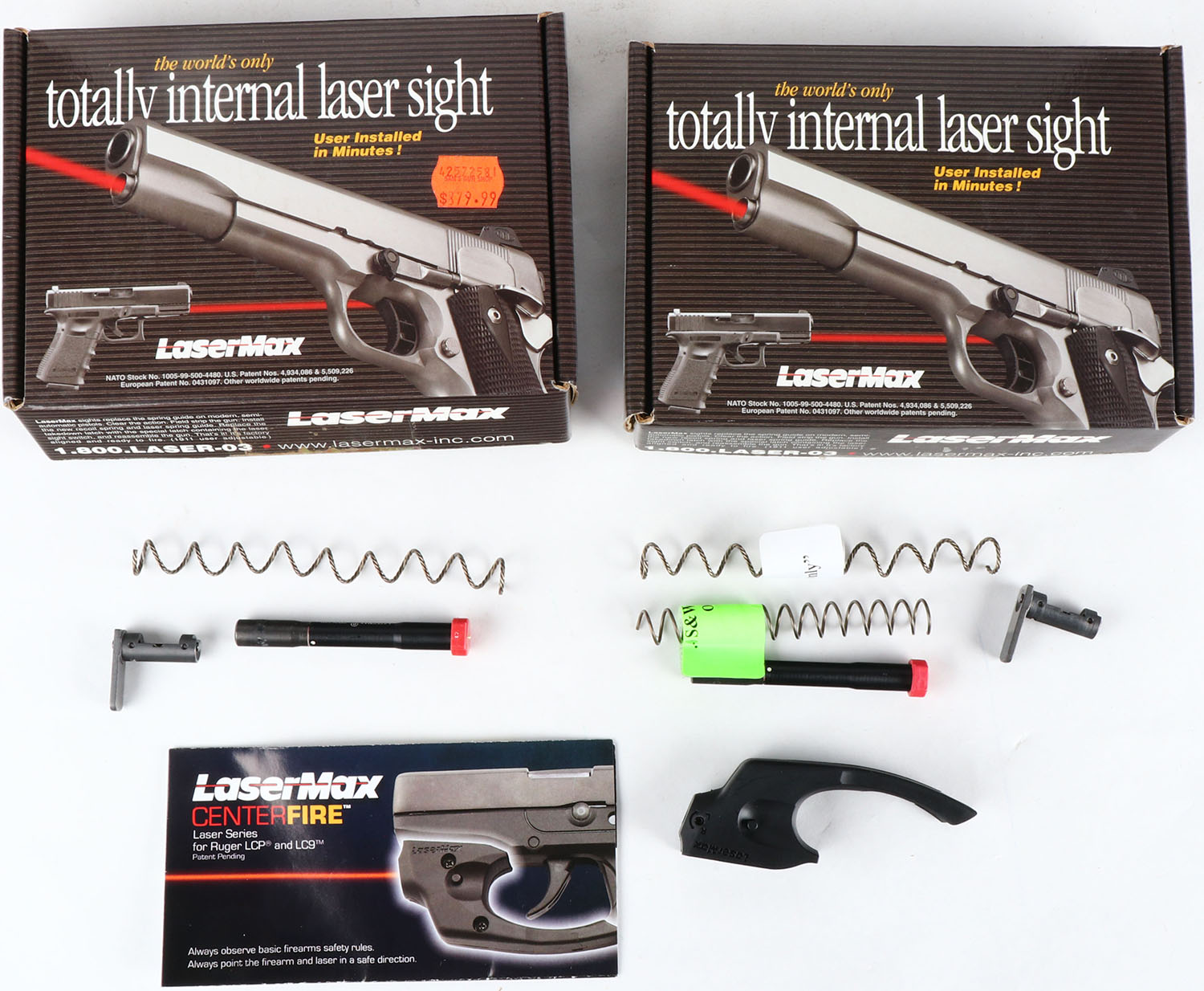 Lot of 3 Laser max laser sight Ruger LCP/LC9, Sig Sauer P228, Sig Sauer P229 9mm & 40 cal., in orginal box with instruction. Grade: Excellent ++ - Value: 100 to 600