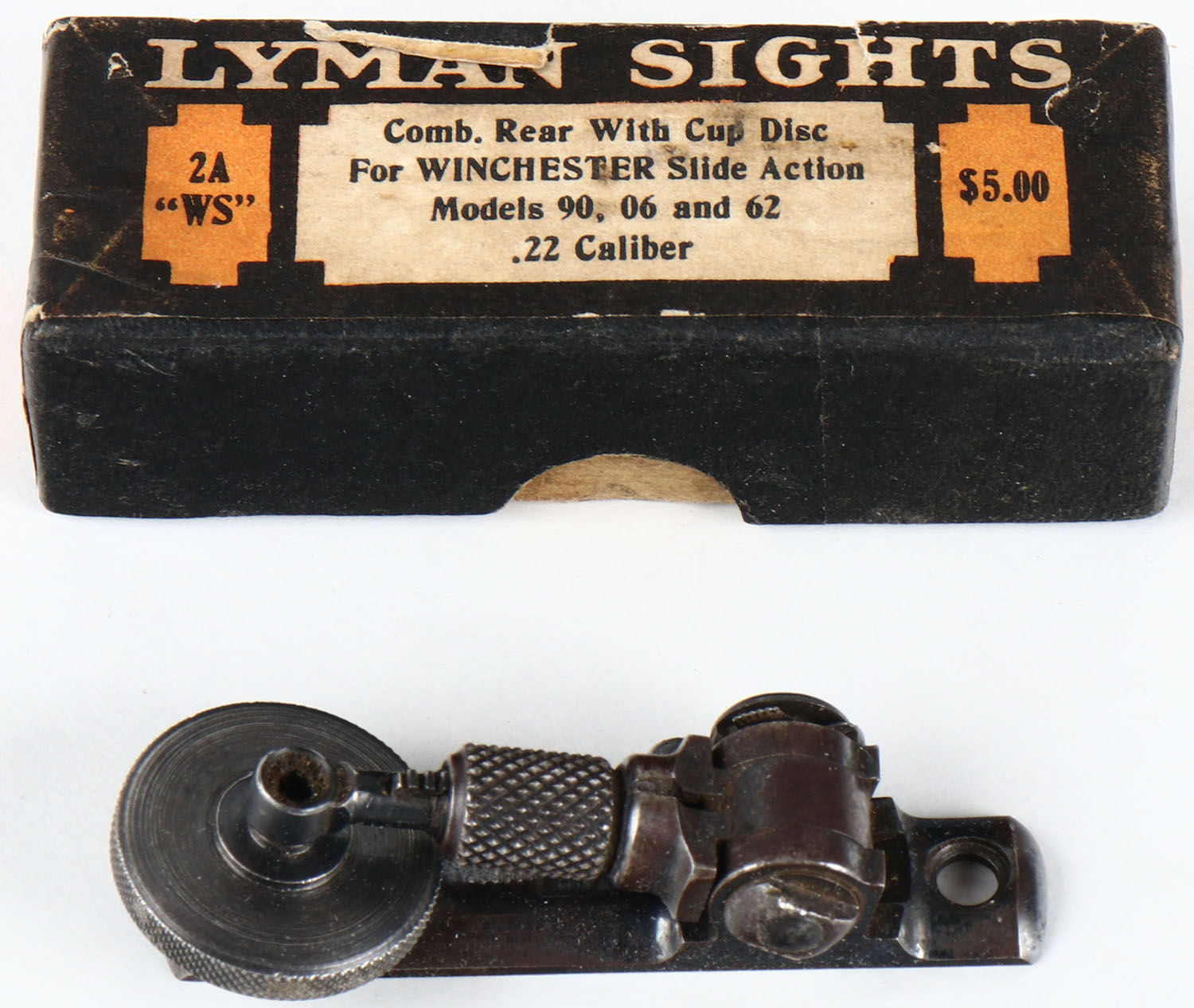 Lyman Tang sight 2A WS, in orginal box with screws & direction sheet. Grade: Excellent - Value: 100 to 300
