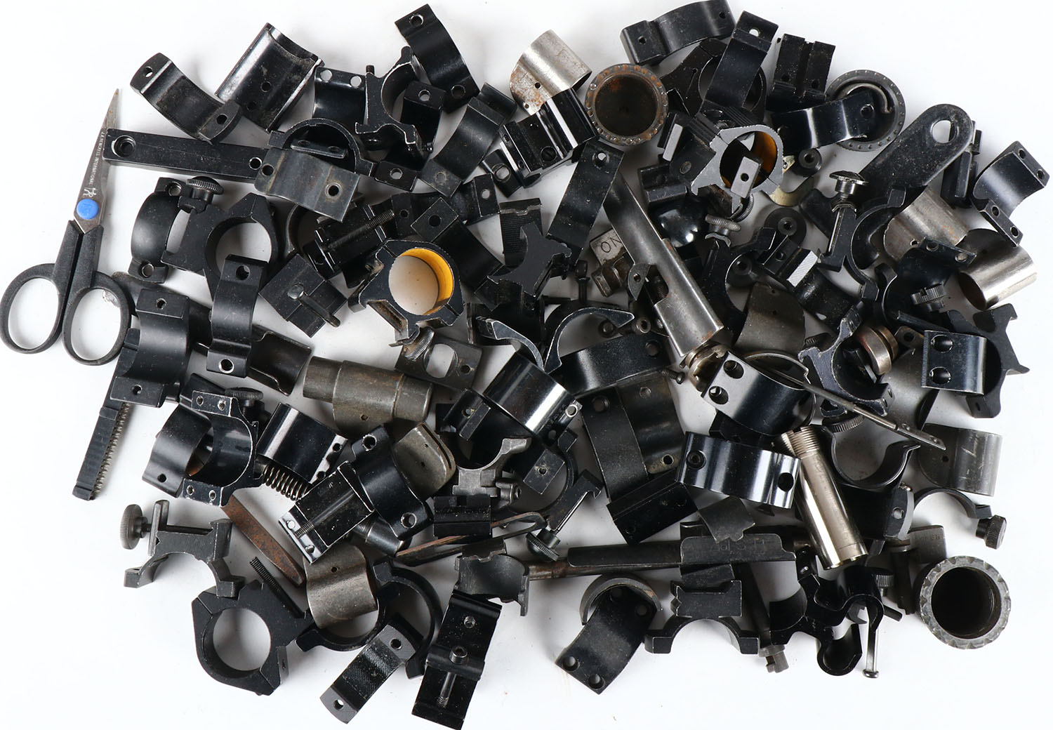 Very large lot of scope ring mounts and parts. Grade: Excellent - Value: 10 to 100
