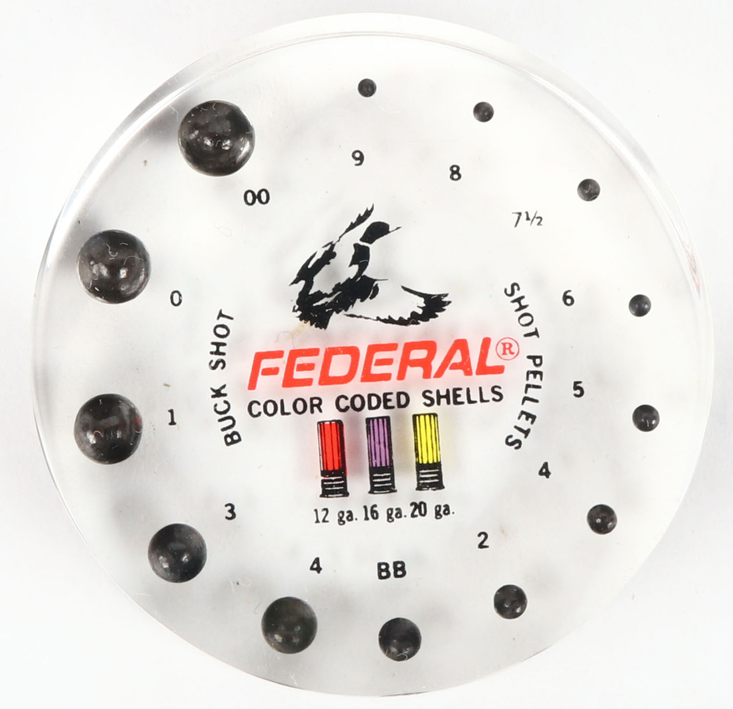 Federal paper weight shows shot sizes 00 - 9 in original box. Grade: MINT - Value: 20 to 40