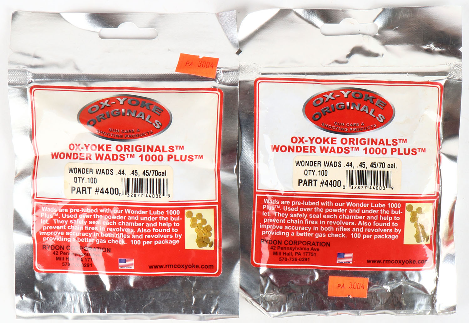 Lot of 2 OX-YOKE Wonder Wads, .44, .45 & 45/70 cal, 100 count in each, full & sealed. Grade: Excellent - Value: 2 to 20