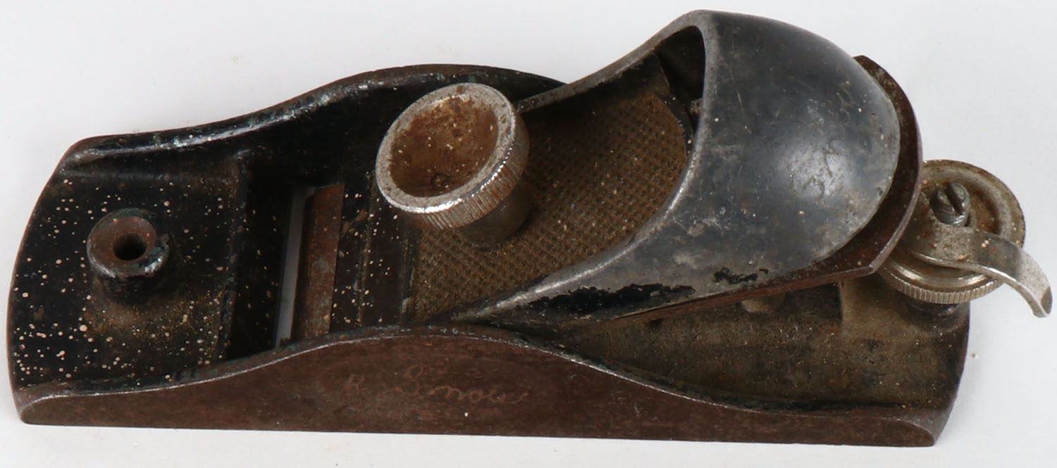 Unmarked metal plane for wood working, 7'' wide. Grade: Very Good - Value: 6 to 30