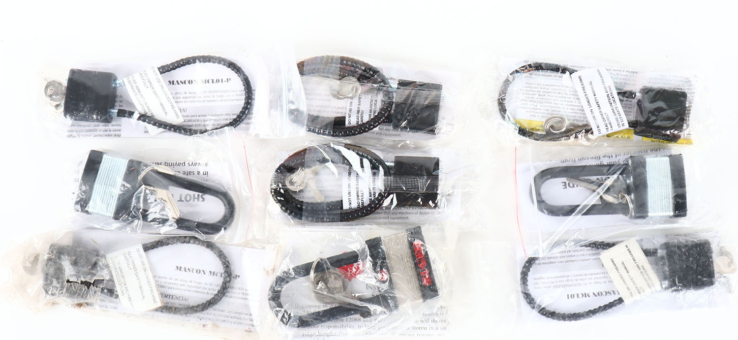 Large lot padlock, all new. Grade: Excellent ++ - Value: 4 to 40
