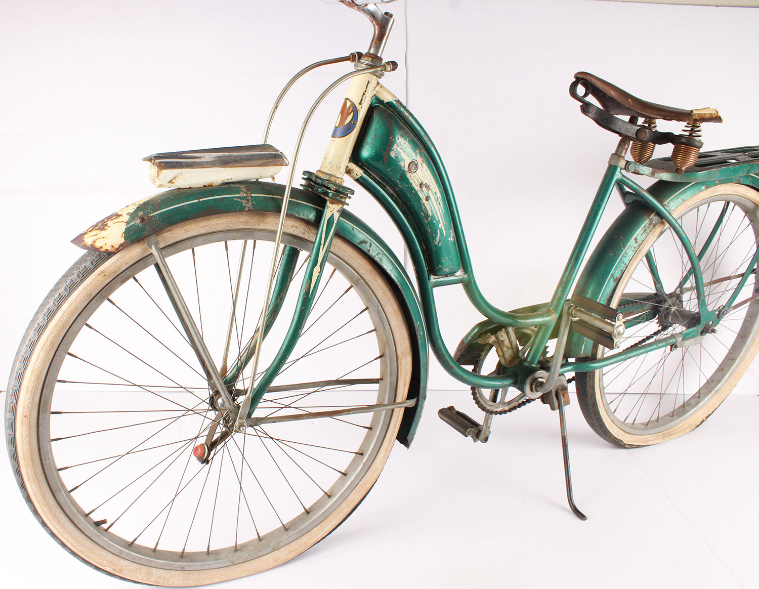 RARE! Winchester Girls Bike, some spots of rust but still in very nice condiiton, wheels still rotate with a few squeaks, rubber tires are flat but still present, Hard to find, Shipping will be High. Grade: Very Good ++ - Value: 50 to 400