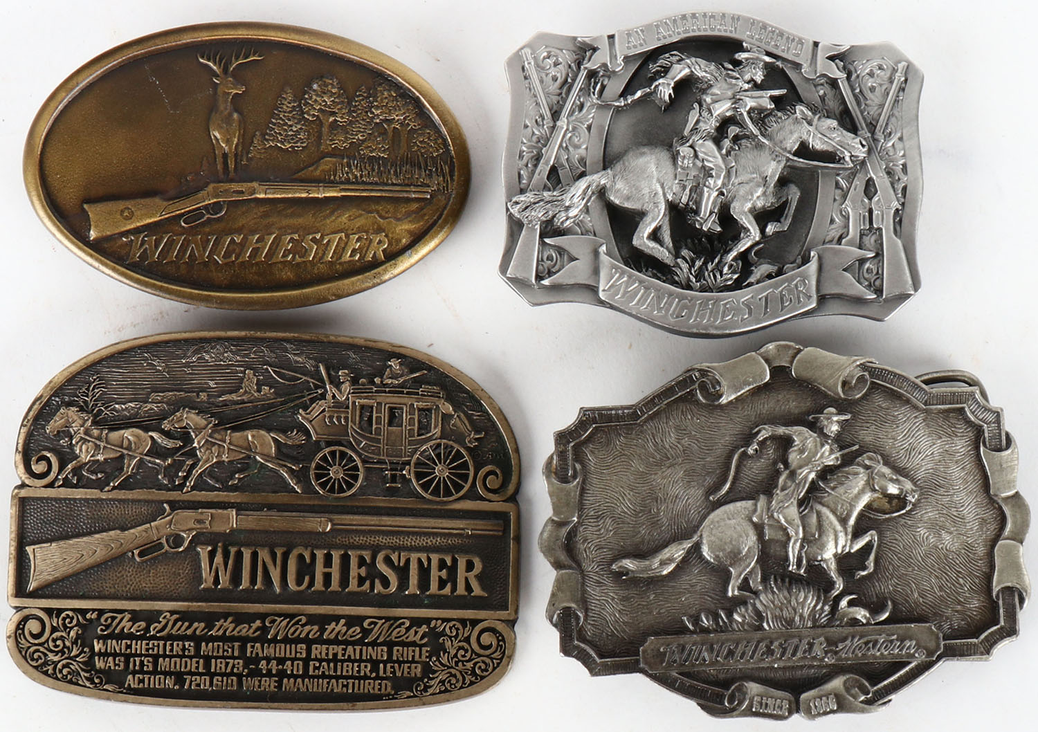 Lot of 4 Winchester Belt Buckles. Grade: Excellent - Value: 10 to 50
