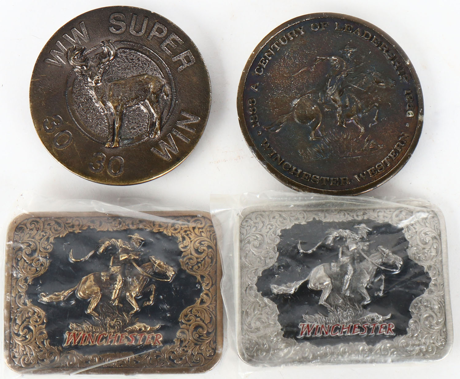 Lot of 4 Winchester Belt Buckles. Grade: Excellent - Value: 10 to 50