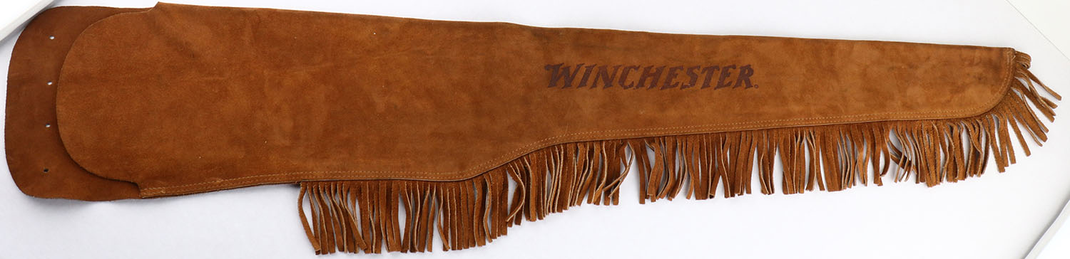 Winchester Leather gun sleeve for the JOHN WAYNE 94 Somm. Rifle, marked Winchester on one side, a must have if you do not have the one that came wit your John Wayne Rifle. Grade: Excellent - Value: 30 to 150