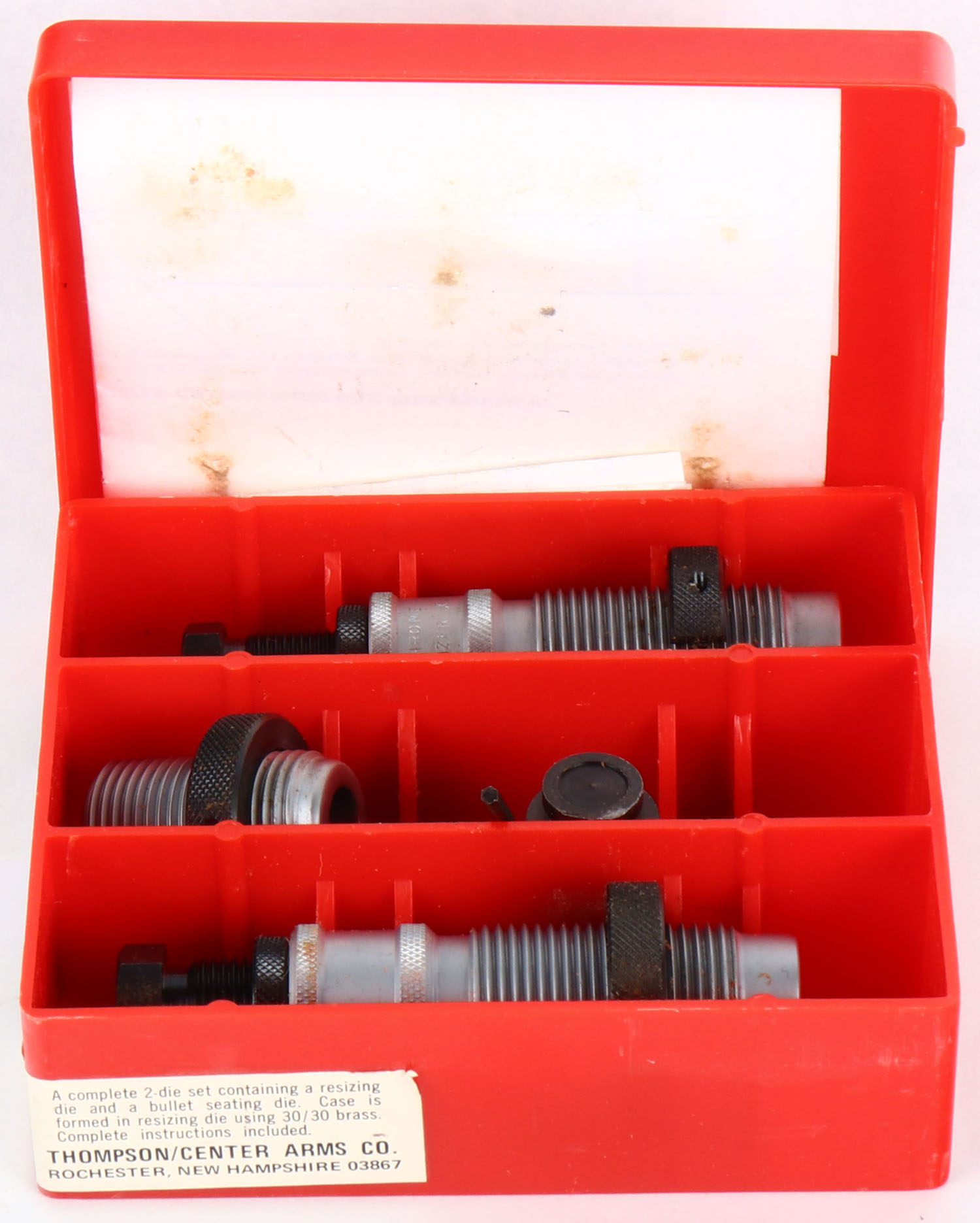 Thompson Center arms reloading dies, .30 cal HERRETT, No. 751, in original box. Grade: Excellent - Value: 20 to 80