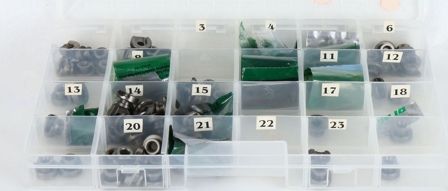 Large lot of RCBS receiving discs, this is what you slide your cartridge into on the base of the press., has many different numbers. Grade: Excellent ++ - Value: 10 to 100