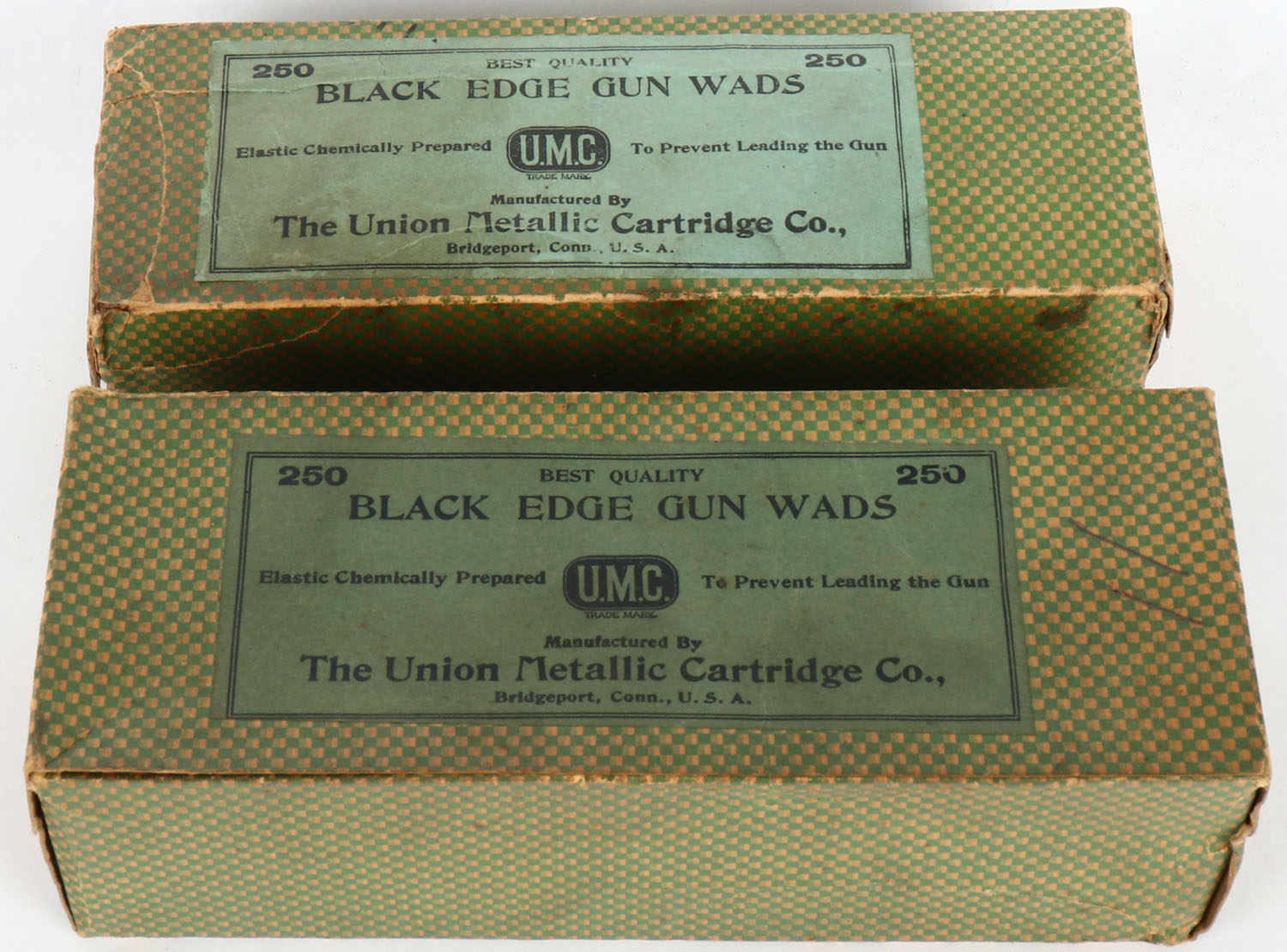 Lot of 2 UMC, Black Edge Gun Wads, 11 & 12ga, almost full. Grade: Very Good ++ - Value: 10 to 60