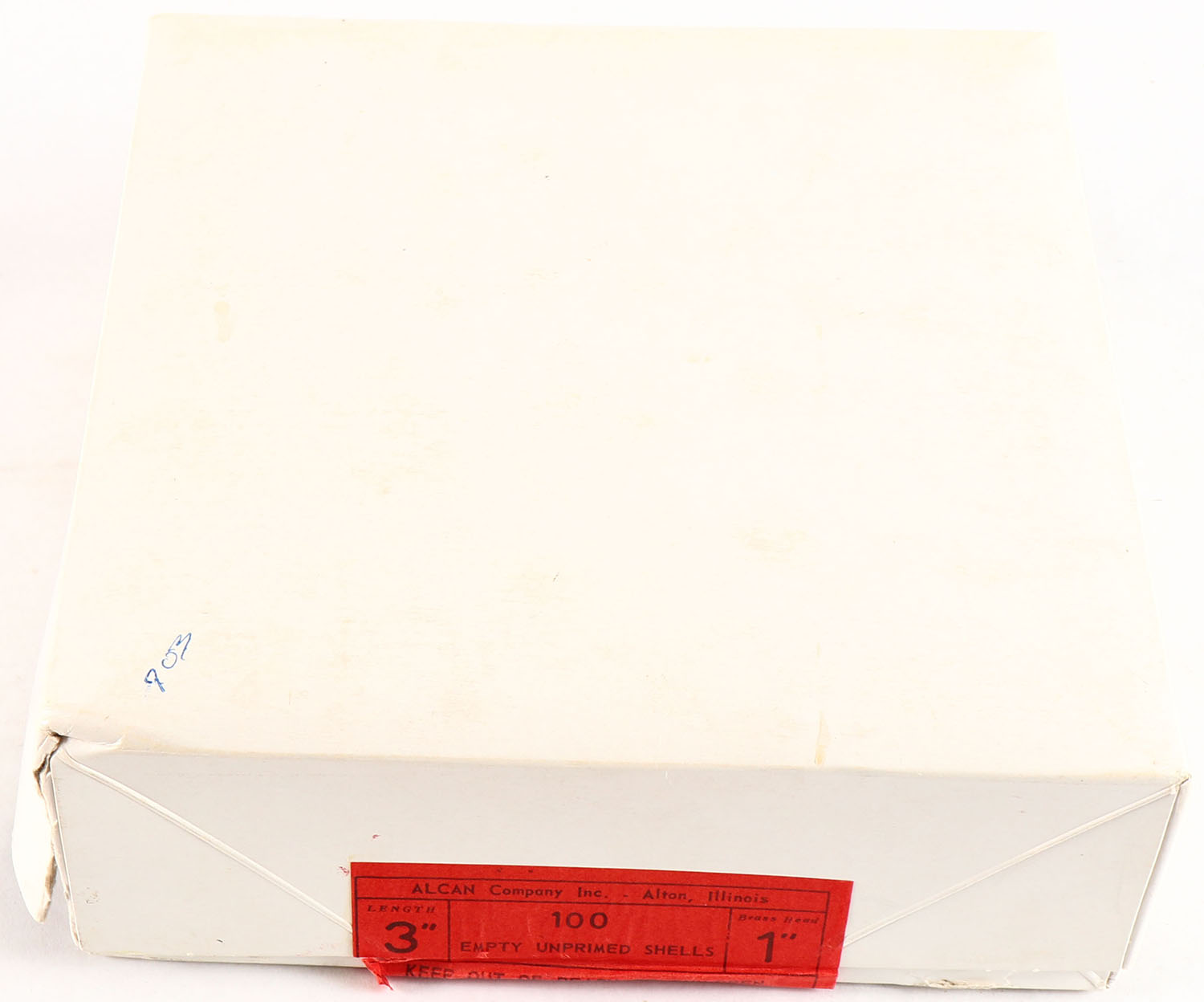 ALCAN Company Inc., 2 pc., Full & Sealed, Empty Unprimed Shells, 3'', Brass head 1'', white box with red labels, box is very solid. Grade: Very Good ++ - Value: 20 to 100