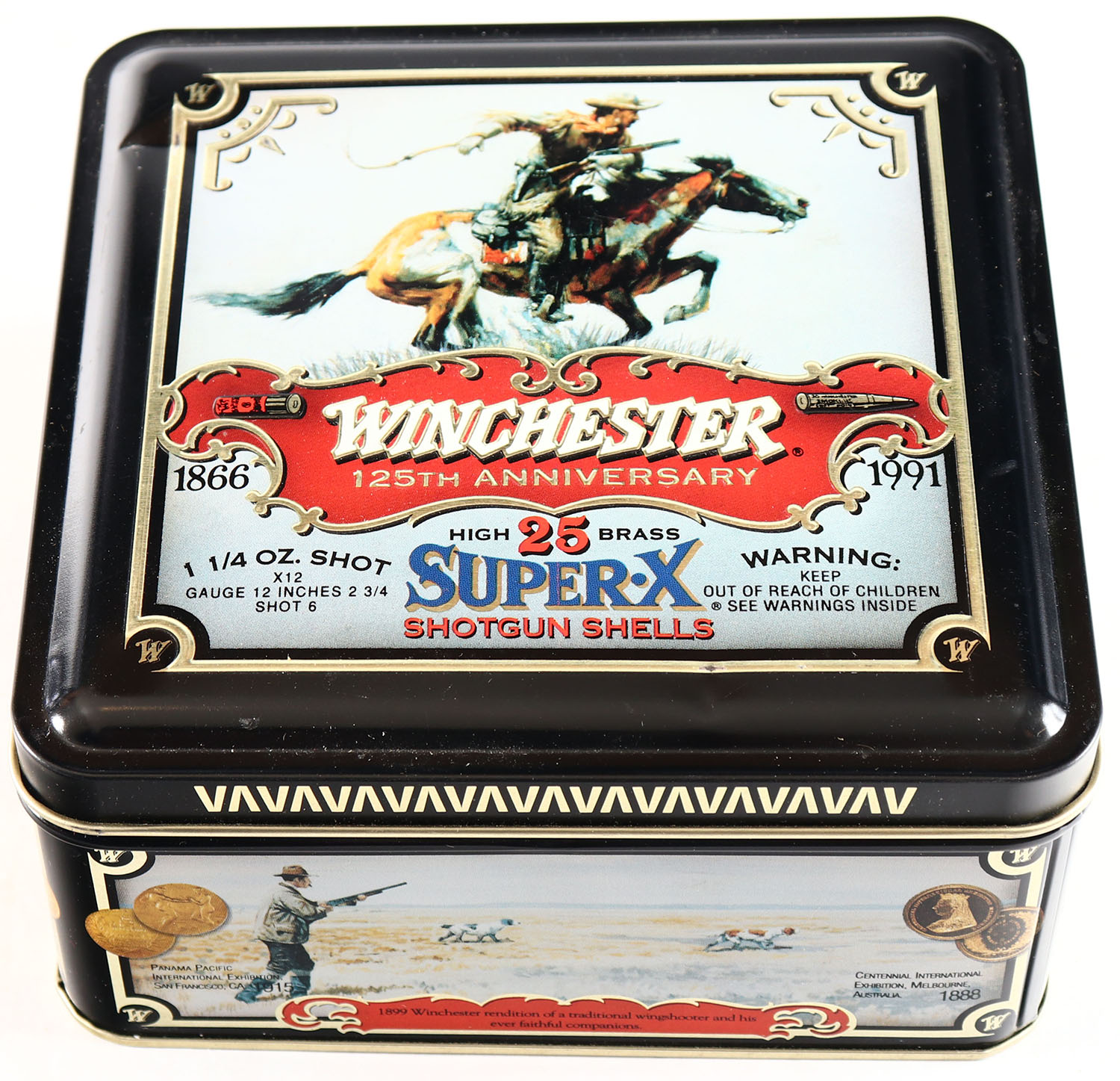 Winchester, Super-X 125th ANNIVERSARY, 1866-19991, 12ga., 1pc., FULL, 25 count metal tin. Grade: MINT - Value: 20 to 60