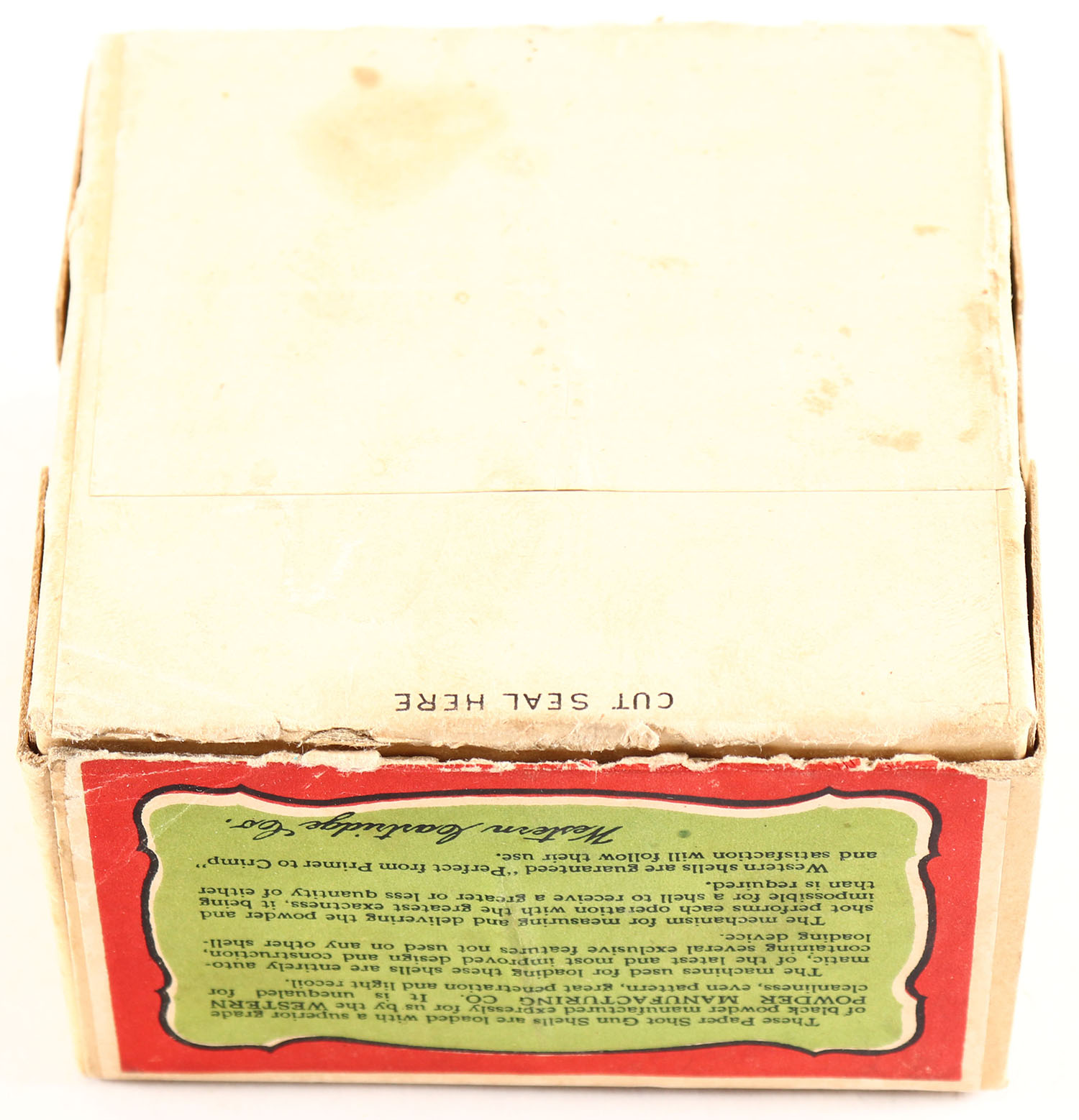 Western, NEW CHIEF, 12ga., 2pc., Empty, shot size Black Powder 3 Drs. 1 Oz. No. 7 Shot, buff box with green, red & black label, box is very solid with very nice colors, Western Diamond Logo on one side. Grade: Excellent ++ - Value: 50 to 250