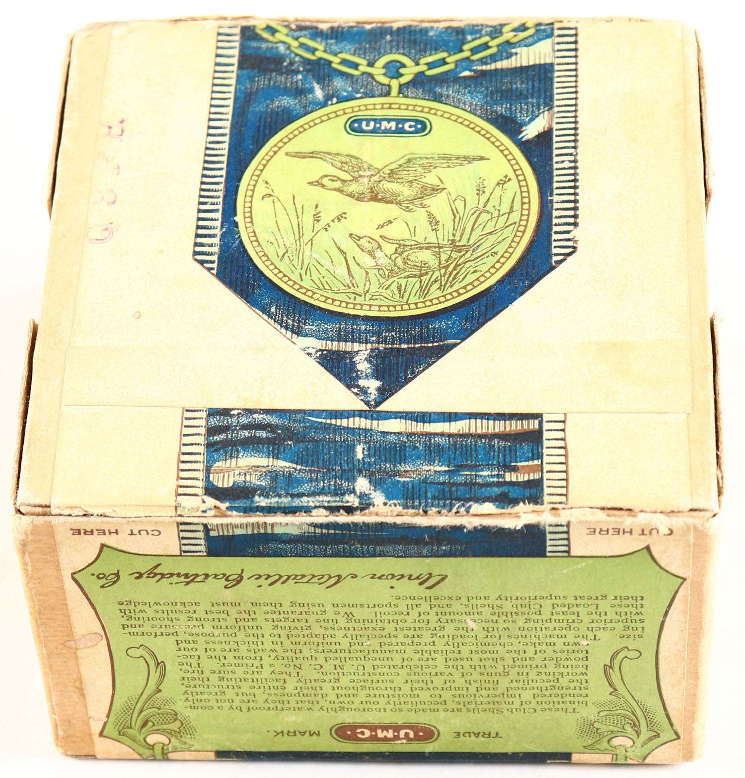 REM-UMC, New Club, 10 GAUGE!, 2pc., Empty, shot size 4, buff box with green, yellow, blue paper label, with great colors to label, box is very solid. Grade: Excellent + - Value: 40 to 100
