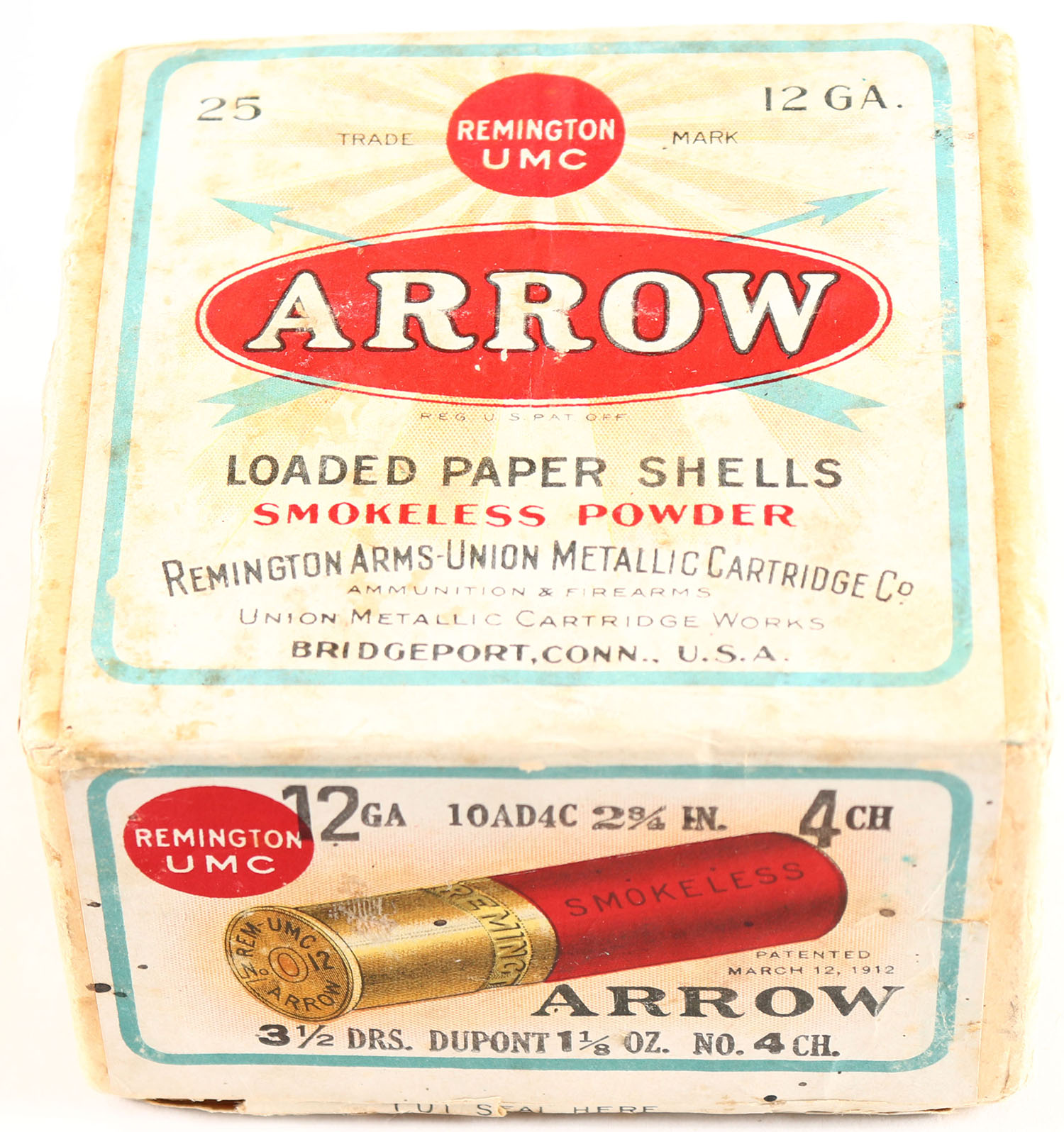 | Remington UMC, Arrow, 12ga., 2pc., Full, shot size 4CH, buff box...